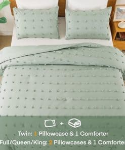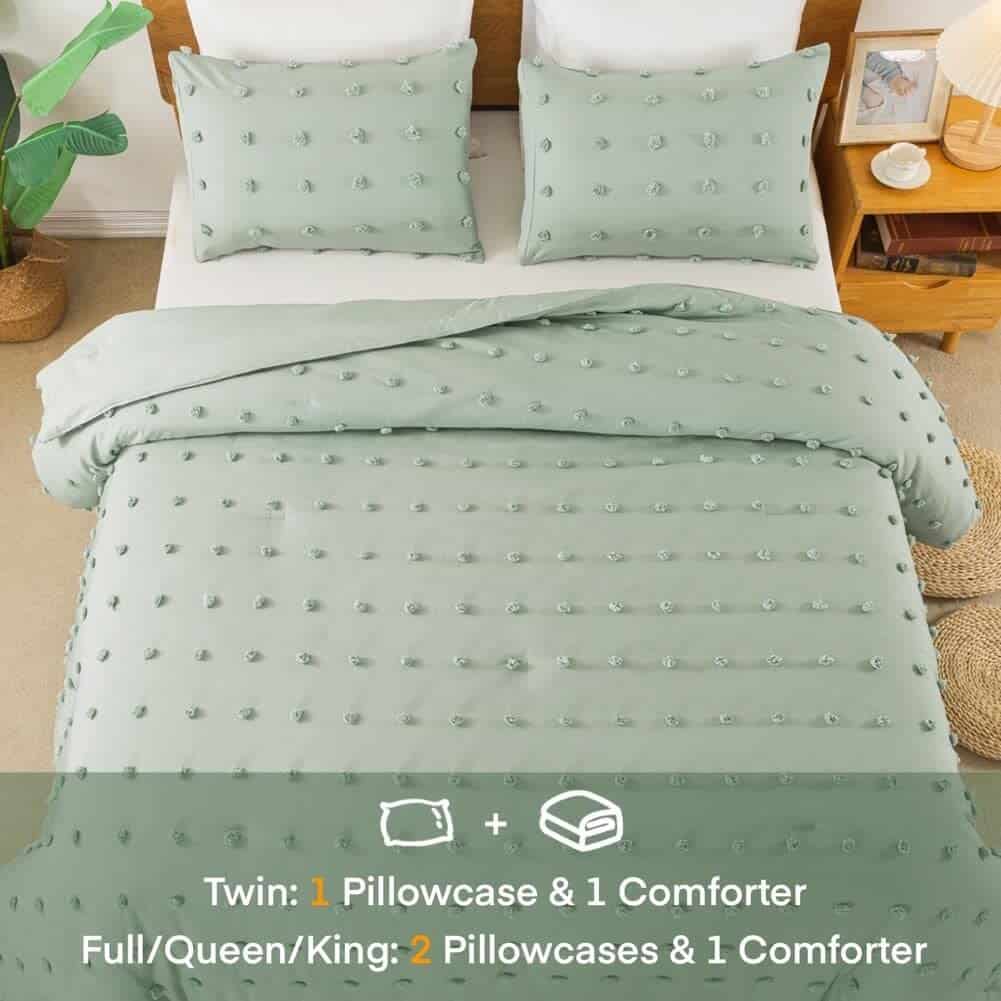 Juego de edredón gemelo / gemelo XL en verde salvia (68×90
