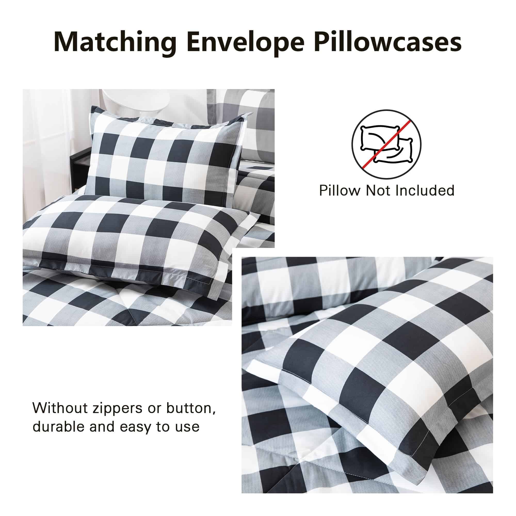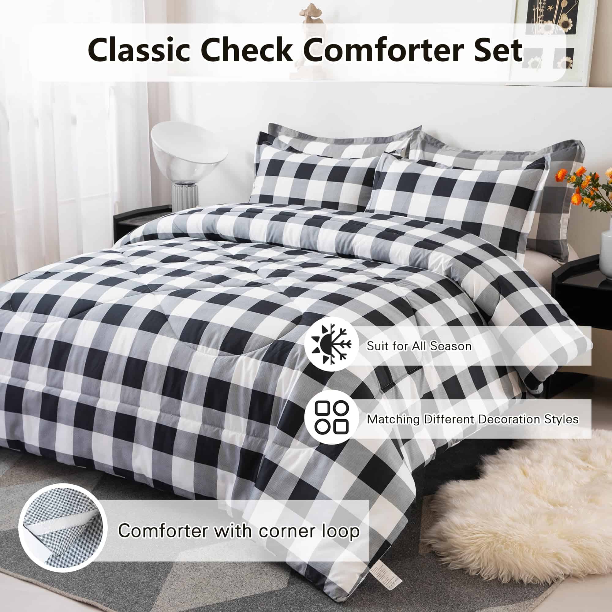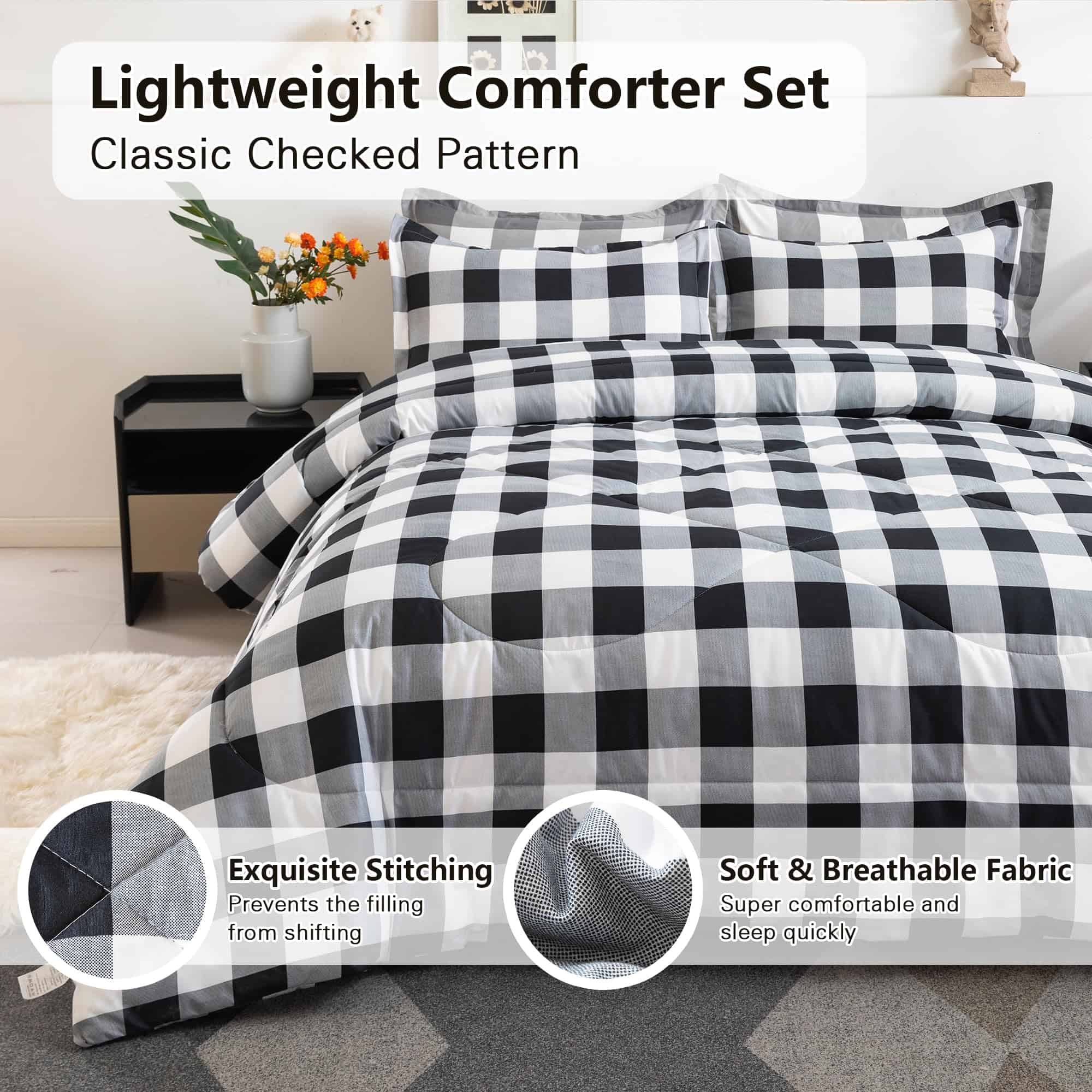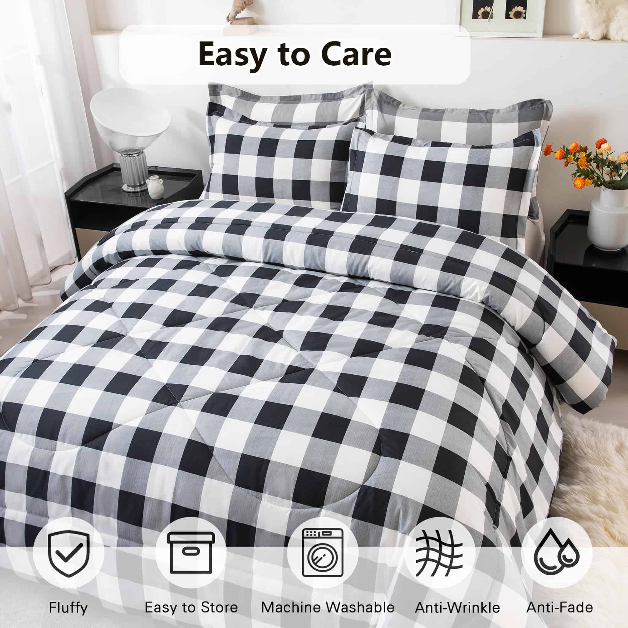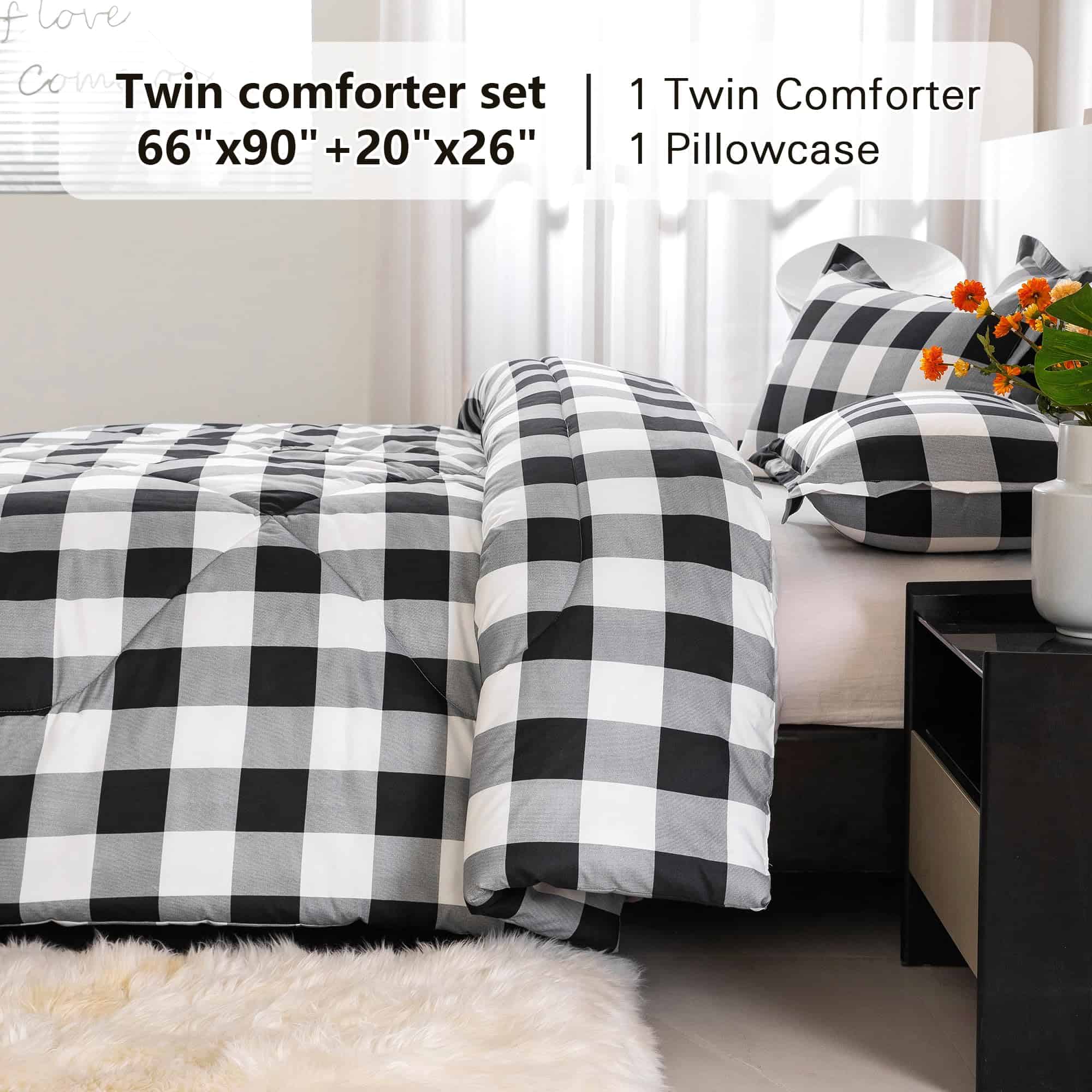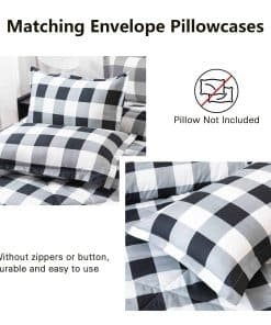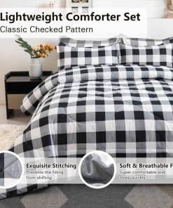El edredón a cuadros negro alternativo es ultra suave y ligero, hecho de microfibra lavable al 100%. Las ventajas de la microfibra incluyen una gran retención de calor y ligereza. Por lo que el juego de edredón texturizado te ofrece la máxima sensación suave y acogedora, para que puedas disfrutar de una noche confortable y tranquila. El diseño clásico y vintage de nuestros juegos de ropa de cama con estampado de cuadros clásicos y versátiles se adapta a varios tipos de habitaciones. El maravilloso juego de edredón de lujo es perfecto para familia, hotel, estancia en casa, granja. Y el juego de edredón de microfibra es una buena opción como regalos de cumpleaños, regalos especiales de vacaciones. Ligero y duradero, el edredón gemelo es altamente resistente con una alta resistencia a la tracción, lo que lo hace fuerte y menos propenso a rasgarse o romperse. Construido con técnicas que incluyen un mejor cosido hace que el relleno se mantenga en su lugar y no se mueva o se apelotone. El edredón alternativo de plumón es resistente al desgaste y a las arrugas para años de uso. Fácil cuidado, se recomienda que el edredón se coloque al sol y se golpee suavemente durante la cocción para que quede hinchado antes de usarlo. Nuestro juego de edredón es lavable a máquina, lavar en agua fría, ciclo suave, y secar a baja temperatura luego secar naturalmente, no usar lejía. Buena opción como regalo de Año Nuevo Feliz/Día de San Valentín.