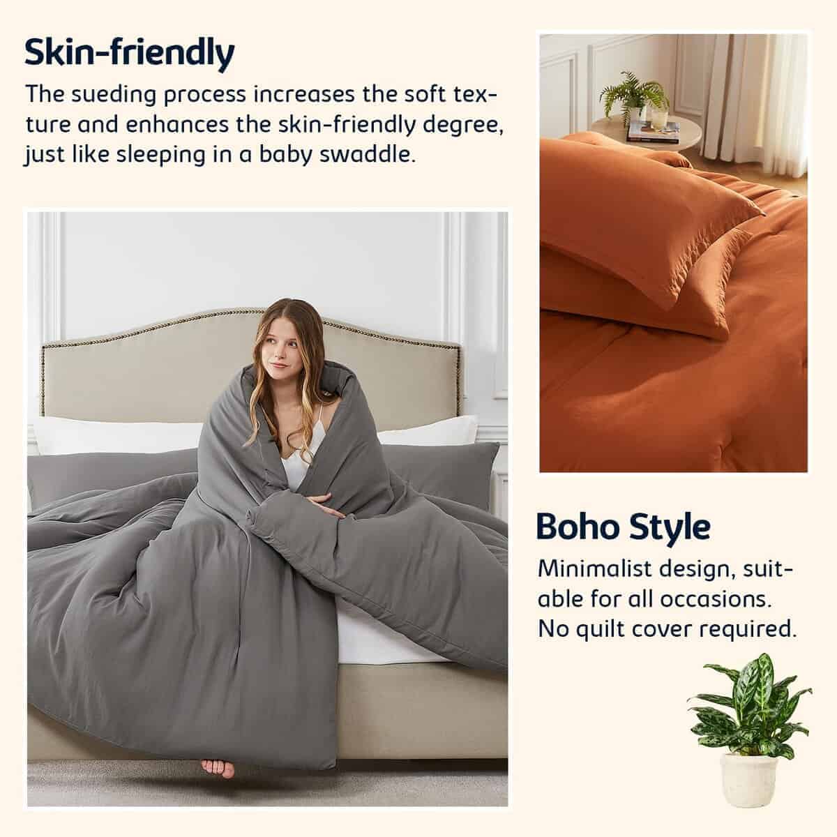 Juego de Edredón Gemelo Quataly Terracota, 2 Piezas, Suave,