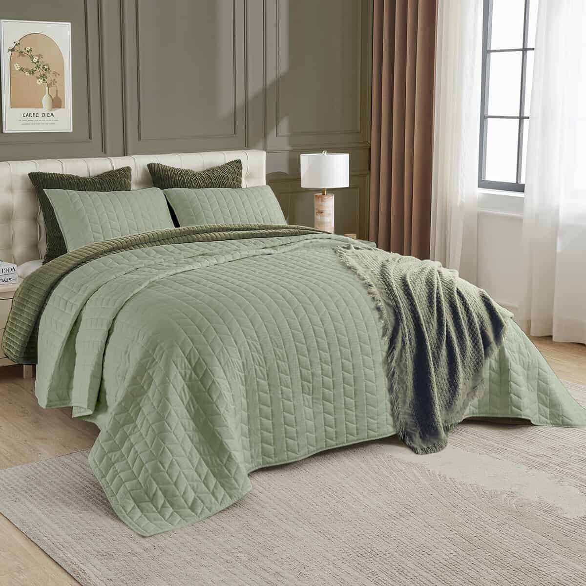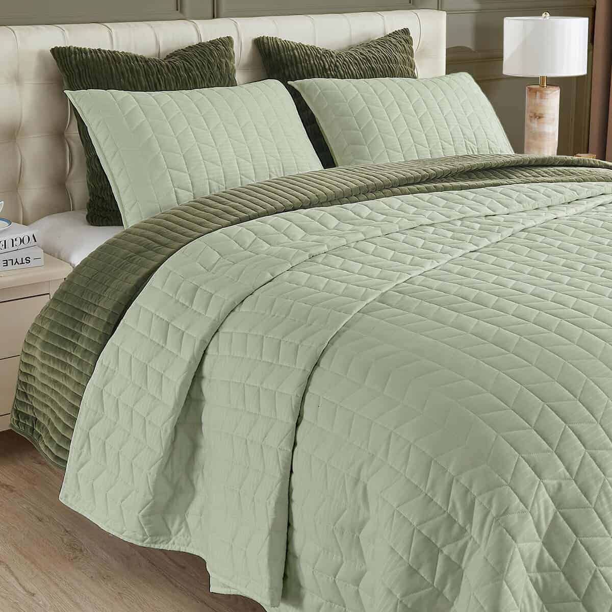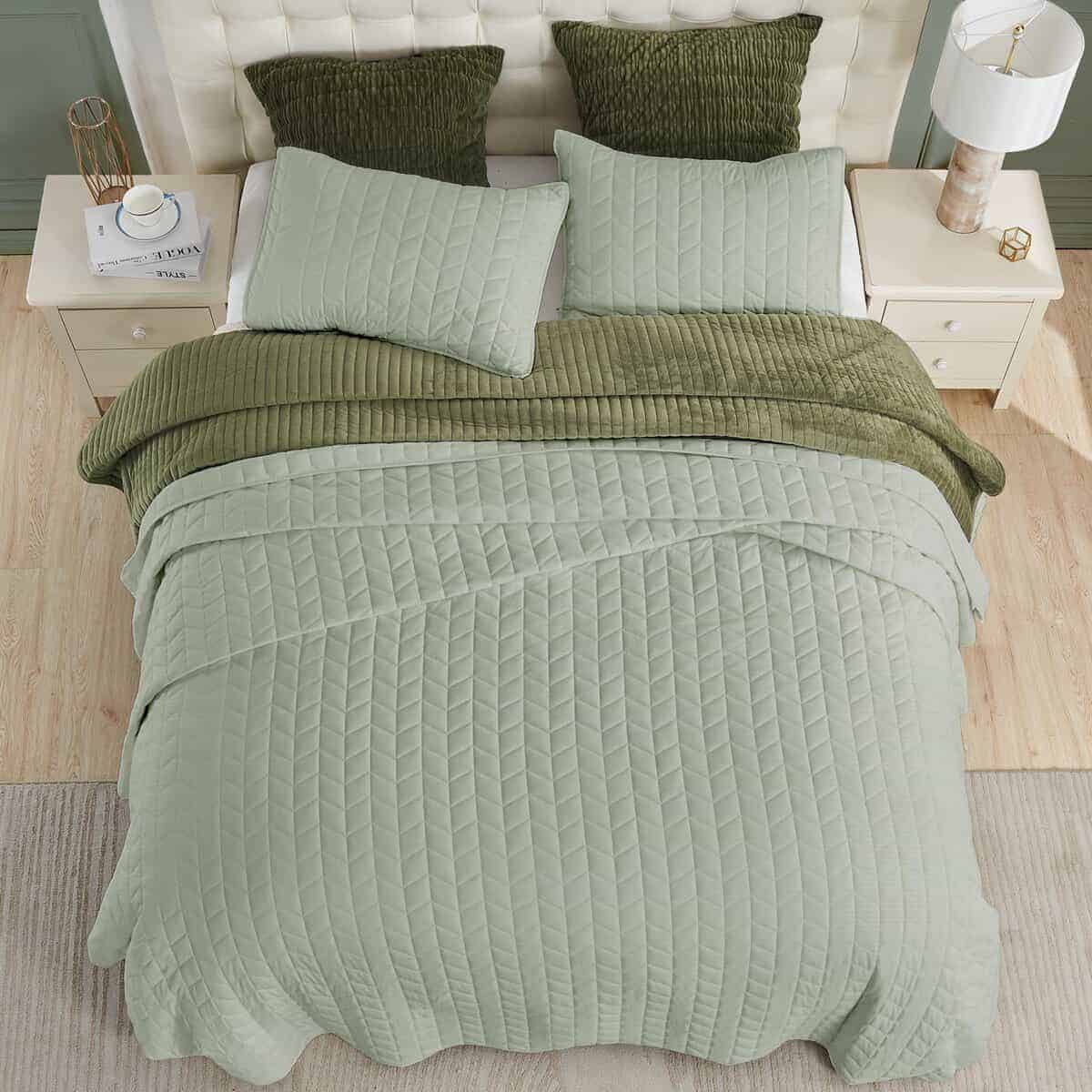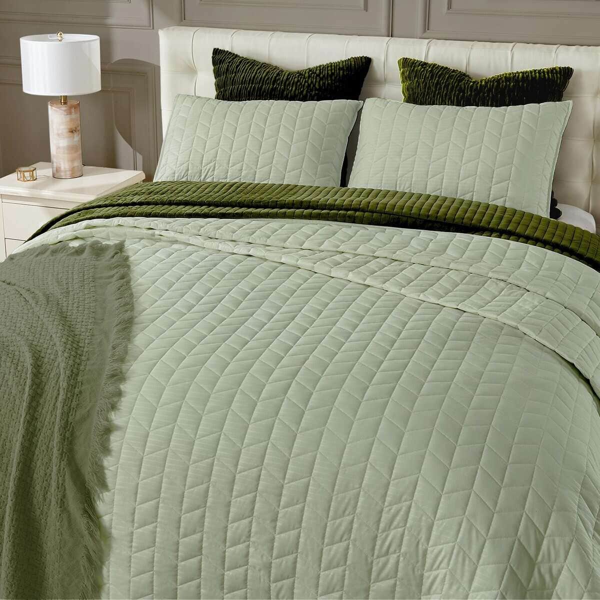 Juego de Edredón Geométrico con Jacquard de Salvia