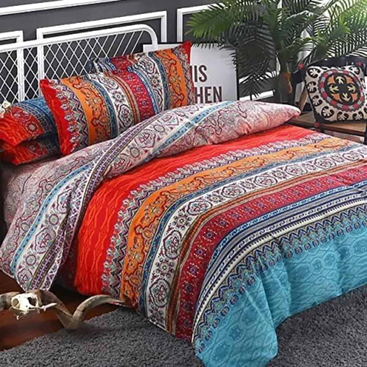 Juego de edredón Goodidea a rayas bohemio tamaño King 3