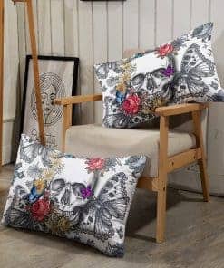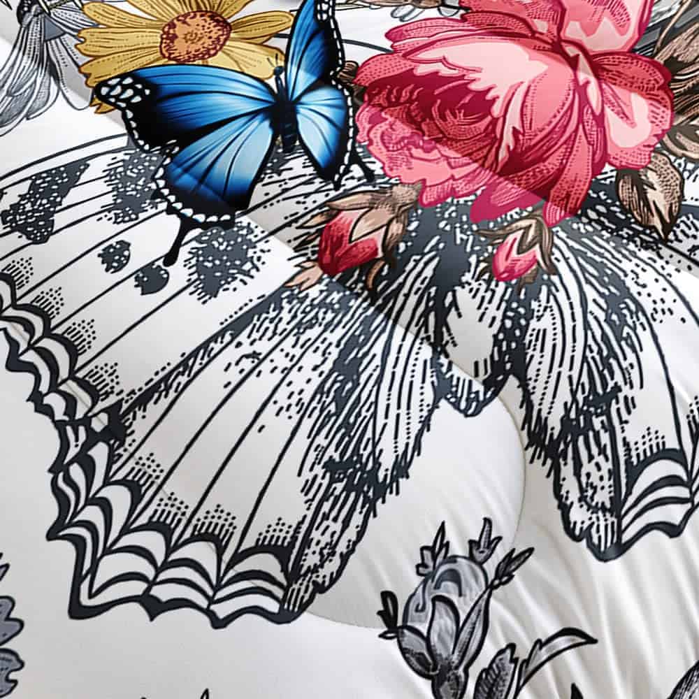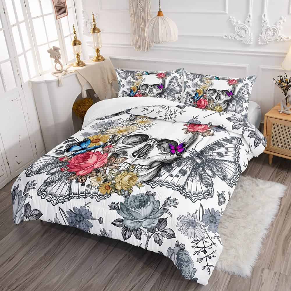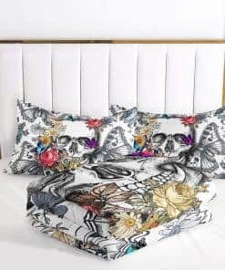 Juego de Edredón Gótico 3D Mariposa Calavera Flor, Juego de