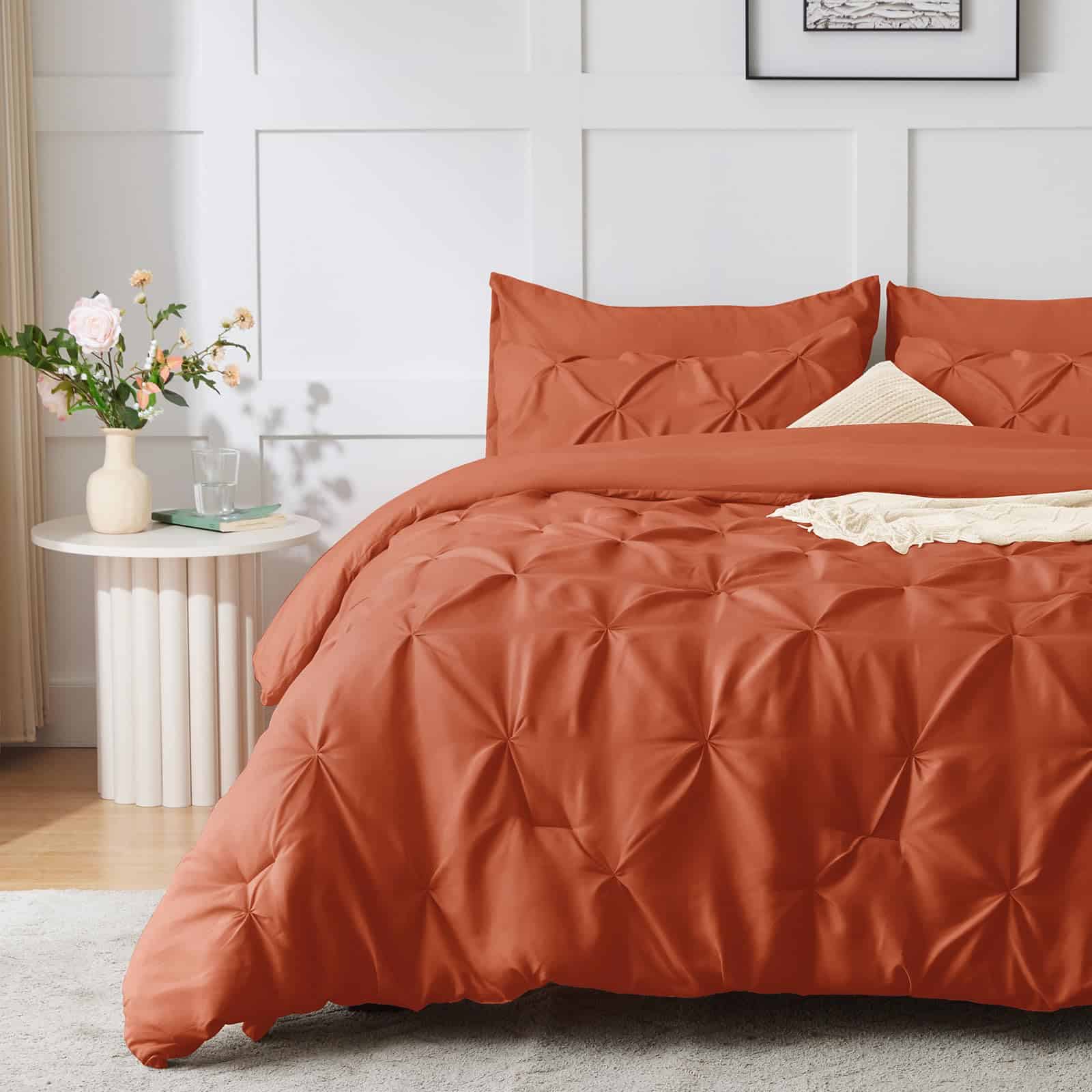 Juego de Edredón HIMEET en Naranja Quemado Tamaño Queen 7