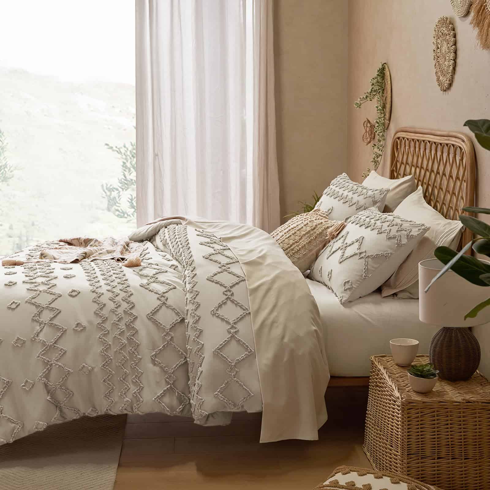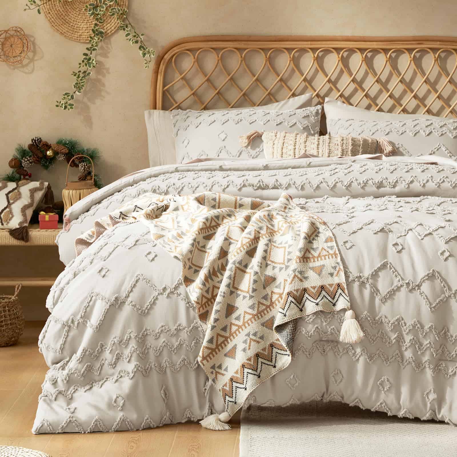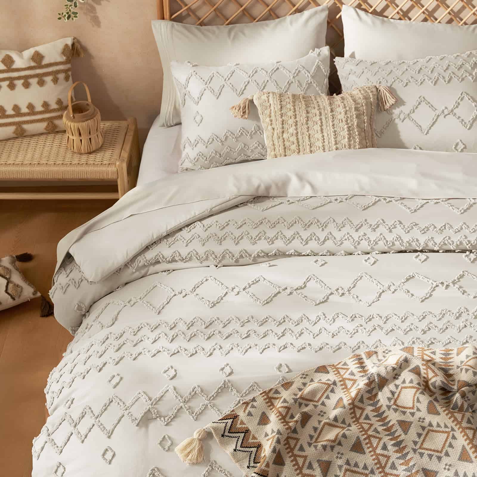 1. Este juego de edredón es perfecto para tu dormitorio de estilo bohemio, con patrones suaves y sutiles que brindan una combinación perfecta de estilo y comodidad.