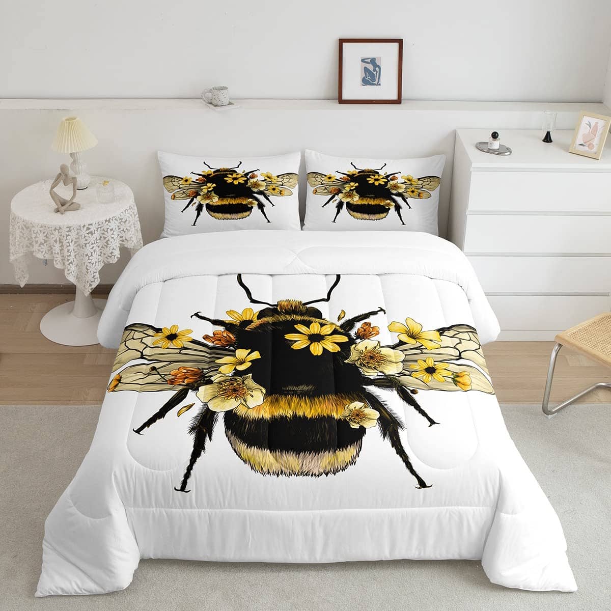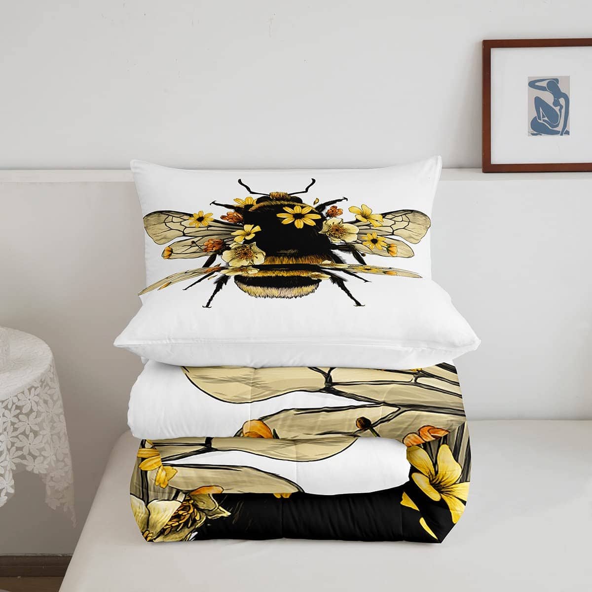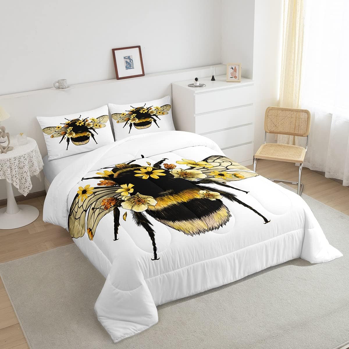 Juego de edredón Homewish Bee Queen Size con estampado de
