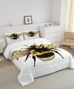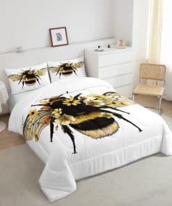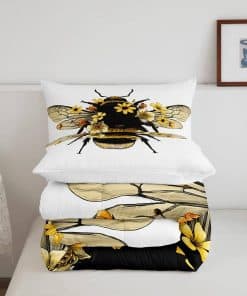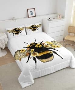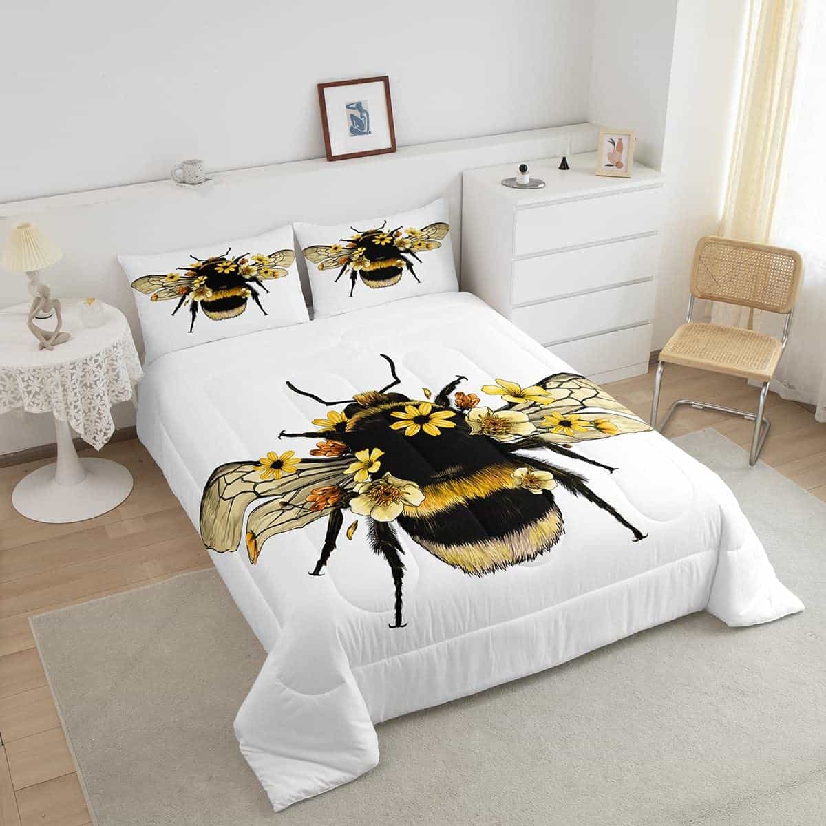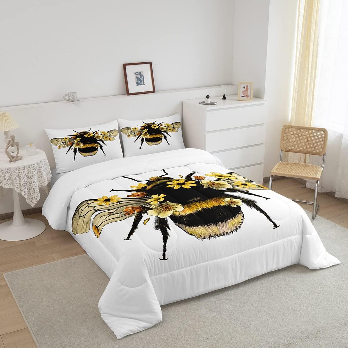 Juego de edredón Homewish Bee Queen Size con estampado de