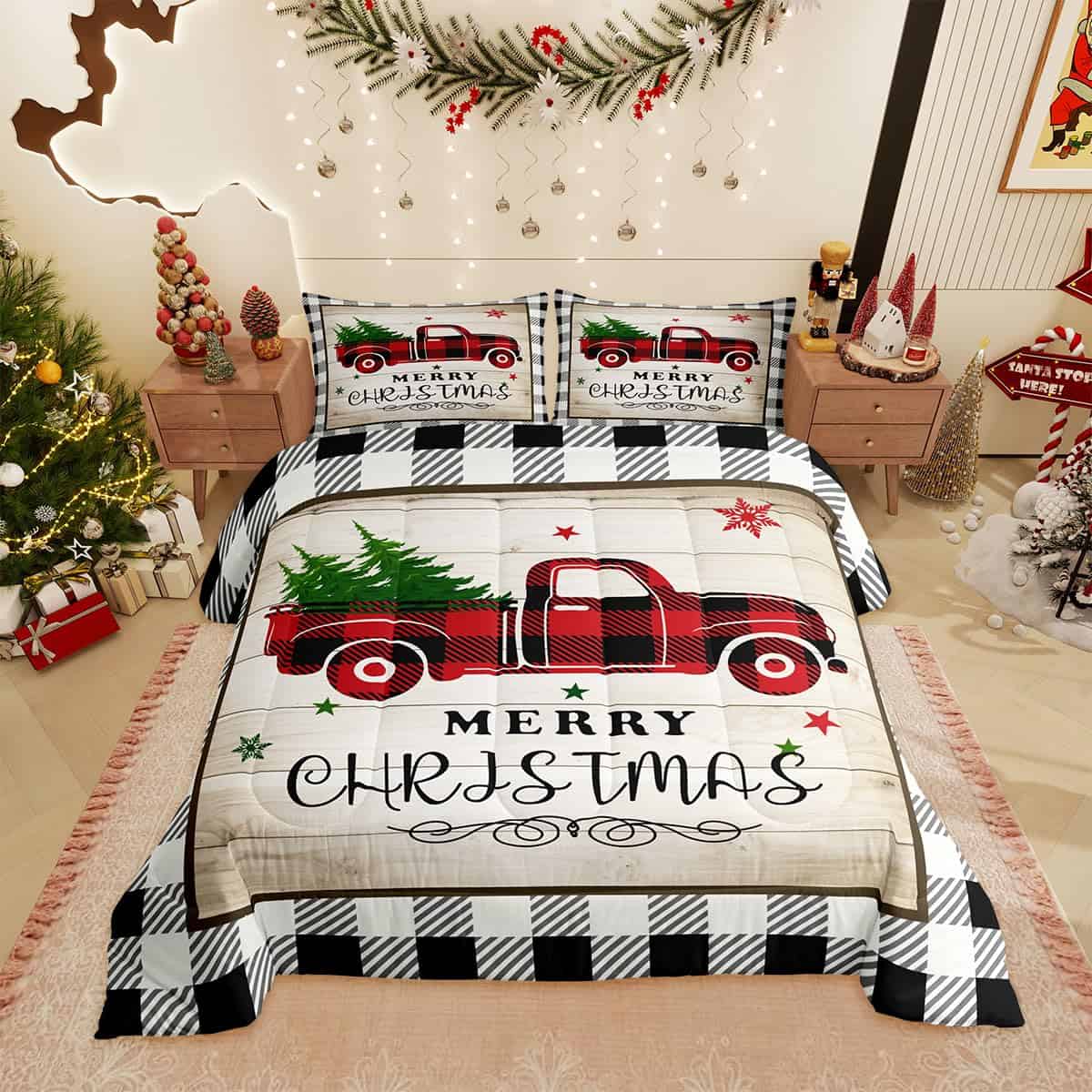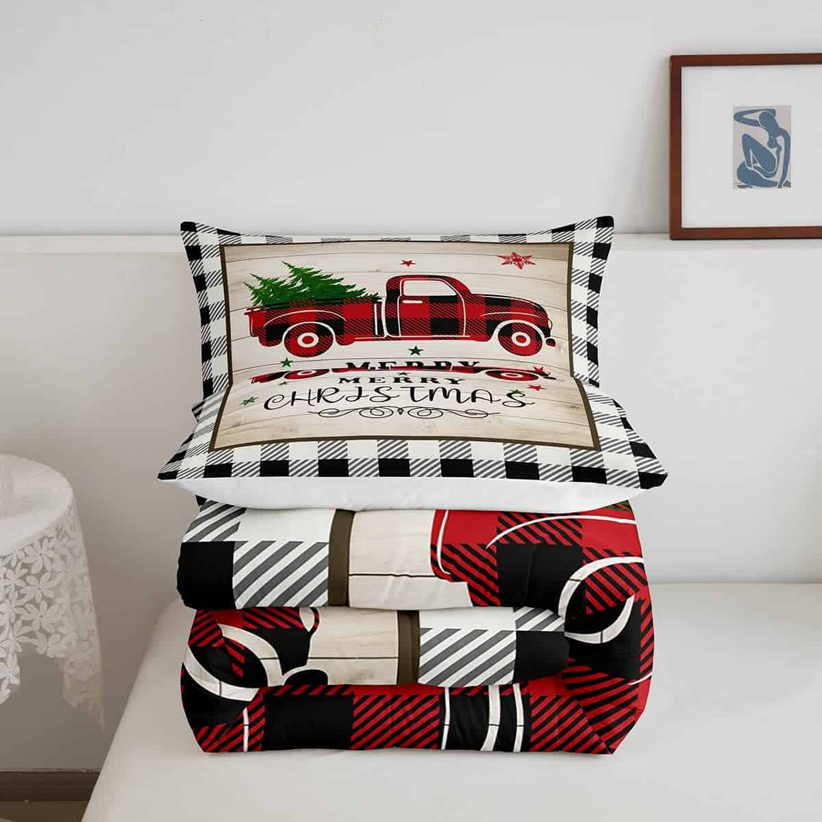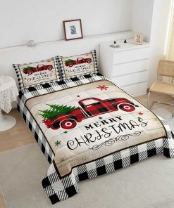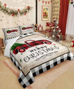Juego de edredón Homewish Geometry Plaid para Navidad