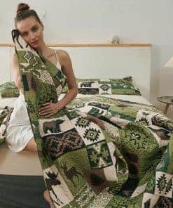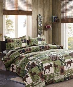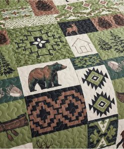 Rustic plaid patchwork bedding Country bedspread coverlet Rustic quilt set include 1 quilt (86″x68″) 2 pillow shams (20″x26″) lodge quilt collection bedding decorate your cottage, home bedroom, daybed, guest room, vacation home. Lodge cabin theme quilt, olive green white plaid patchwork quilt, bear quilt set bedding is a perfect choice for home decor, rustic bedding animal quilt giving your bedroom unique aesthetic and invigorate your room spread immediately. Soft cozy warm materials: Rustic quilt bedspread bedding, cabin bear theme twin quilts set is made of 100% ultra soft microfibers fabric-long lasting softness and ultimate relaxation with fade & stain resistance better than cotton, soft, smooth, skin-friendly and breathable durable. Cozy and soft after washing, twin size quilts rustic Bedding will provide you a cozy and relaxing sleep experience–ultra soft microfibers does not tend to bunch with time like cotton which has little elasticity. Reversible bear quilt bedspread design for all seasons: Soft warm & cozy all season twin quilt set. Lightweight rustic quilt bedspread, lodge bedding twin-size bedspread, multi-layer construction reversible design, both sides with the olive green white plaid patchwork and forest bear moose pattern, inside filling with warm Egyptian cotton, Tight stippling stitch and seams for durability can protect the inner filling, will hold up through washing and won’t unravel, perfect for family with pets or kids. Versatile & lightweight home bedspread coverlet set: Rustic cabin quilt set can be used as a bedspread or coverlet to provide coziness and softness in spring and summer, winter provides warmth as a blanket, country bear collection bedding twin bed quilt set light enough to carry when you travel or go for outside activities, it should be a perfect decor for your bedroom, guest room, kid room, vacation home. Twin rustic quilt coverlet can also be a wonderful gift for a wedding, birthday, holiday, and other occasions. Easy care & long-lasting: Rustic theme patchwork plaid bedspread coverlet soft cozy warm, machine washable in cold water and tumble dry on low, wash separately from different colors. No fade stain, shrink, and wrinkle-resistant, color will not fade after washing, soft microfibers material can keep the shape and softer after washing repeatedly.