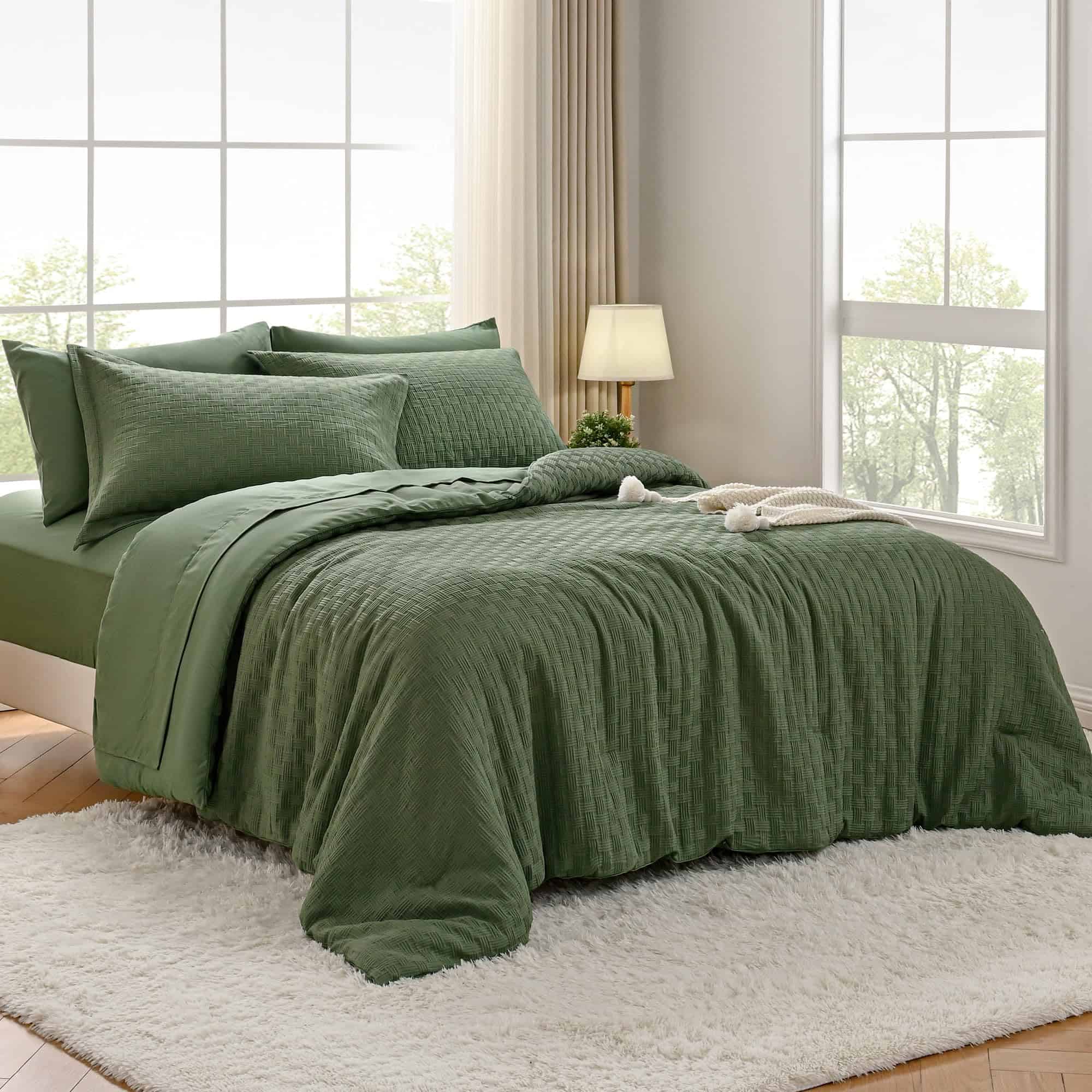 Juego de Edredón JELLYMONI Queen – Conjunto de Cama Verde