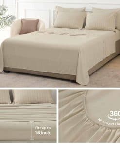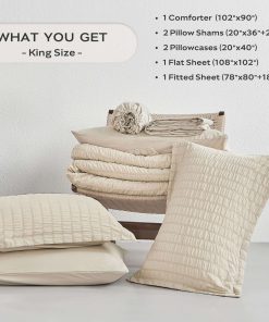 Elegante Diseño: Esta sábana ajustable con bolsillos profundos elásticos está diseñada para adaptarse a colchones de hasta 18 pulgadas de profundidad. Su diseño garantiza un ajuste antideslizante, proporcionando estabilidad sin importar cuánto te retuerzas durante la noche. Los suaves tonos blancos añaden un toque sutil de color a la estética refinada y minimalista. Juego Completo: Nuestro juego de cama tamaño king incluye todo lo que necesitas: 1 edredón (102″x90″), 1 sábana plana (108″x102″), 1 sábana ajustable (78″x80″+18″), 2 fundas de almohada (20″x36″+2″), y 2 fundas de almohada (20″x40″). Es un juego de ropa de cama todo en uno que satisface todas tus necesidades. Cuidado Fácil: Estos juegos de ropa de cama son lavables a máquina, ahorrándote tiempo y esfuerzo. Para mantener la suavidad durante todo el año y prevenir la formación de bolitas, se recomienda lavarlas en un ciclo suave con agua fría. Cuando sea necesario, sécalas al aire o en secadora a baja temperatura. Permite que nuestras sábanas de edredón sigan proporcionándote a ti y a tu familia una experiencia de sueño acogedora. Servicio Excepcional en Jellymoni: Estamos comprometidos a crear ropa de cama premium con un toque elegante, diseñada para brindar una experiencia de sueño tranquila y acogedora para familias de todo el mundo. Respaldamos nuestros productos con una política de devolución de 30 días, garantizando tu completa tranquilidad. Si tienes alguna pregunta o requieres asistencia, nuestro equipo de soporte dedicado siempre está listo para proporcionar ayuda rápida en un plazo de 24 horas.