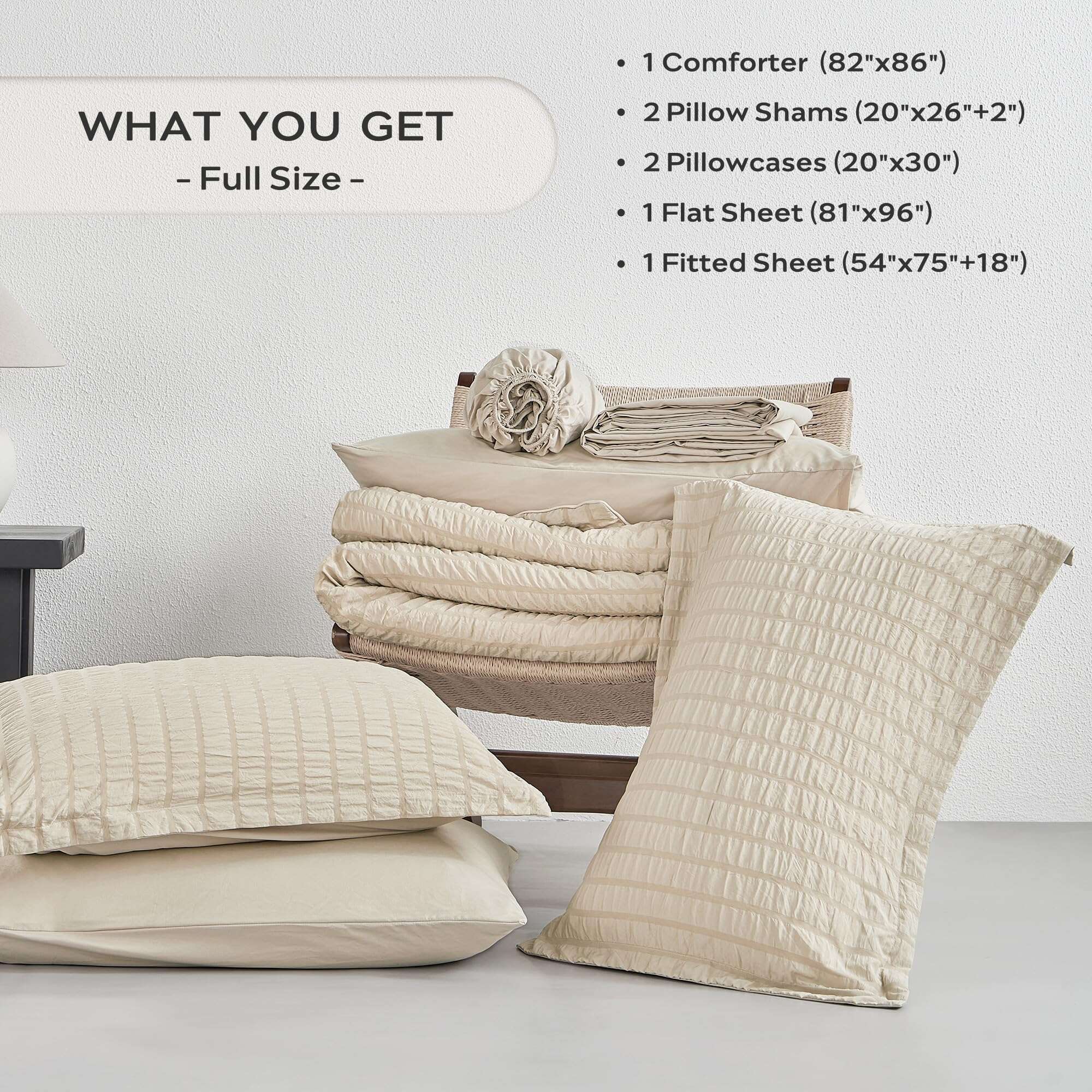 3. Set Completo: Nuestro juego de cama tamaño completo incluye todo lo que necesitas: 1 edredón (82″x86″), 1 sábana plana (81″x96″), 1 sábana ajustable (54″x75″+18″), 2 fundas de almohada (20″x26″+2″), y 2 fundas de almohada (20″x30″). Es un conjunto de ropa de cama todo en uno que cubre todas tus necesidades.