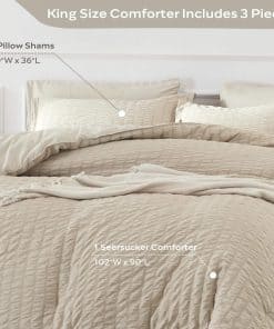 El juego de edredón JELLYMONI Seersucker en tamaño King incluye un edredón de 102 pulgadas por 90 pulgadas y dos fundas de almohada de 20 pulgadas por 36 pulgadas más 2 pulgadas. Estas piezas son fáciles de mantener, ya que son lavables a máquina, lo que te ahorra tiempo y esfuerzo. Para mantener la suavidad durante todo el año y prevenir el pillado, se recomienda lavarlas en ciclo suave con agua fría. Cuando sea necesario, secar al aire o a temperatura baja. Permite que nuestras sábanas de edredón continúen brindándote a ti y a tu familia una experiencia de sueño acogedora.