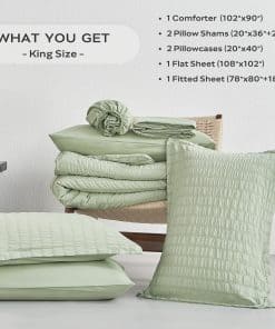 JUEGO DE EDREDÓN JELLYMONI Tamaño King con Sábanas, Verde
