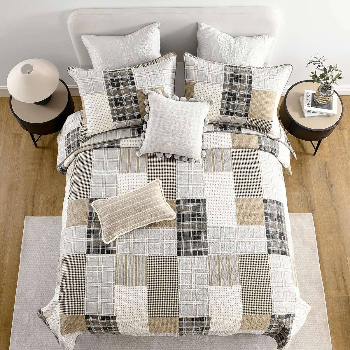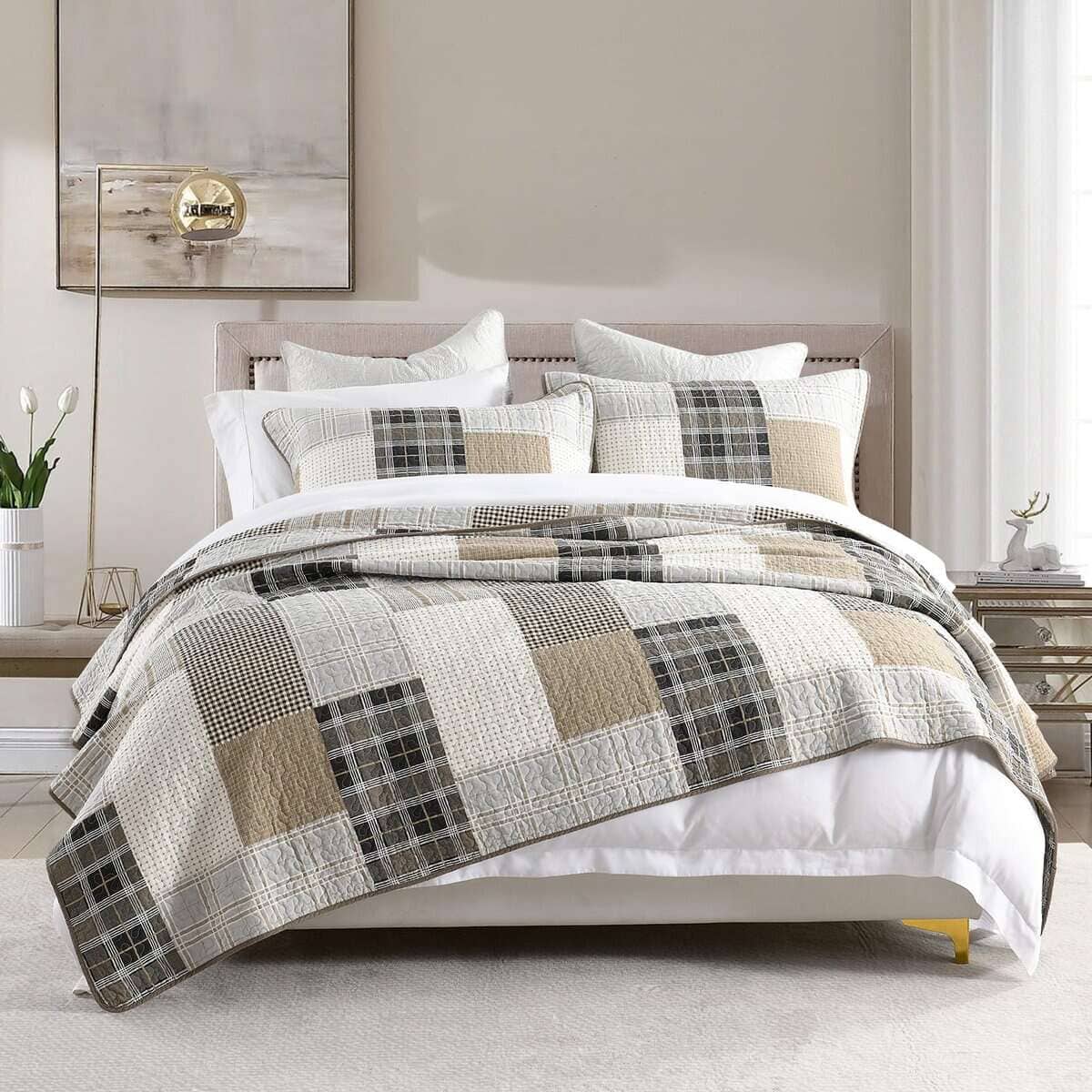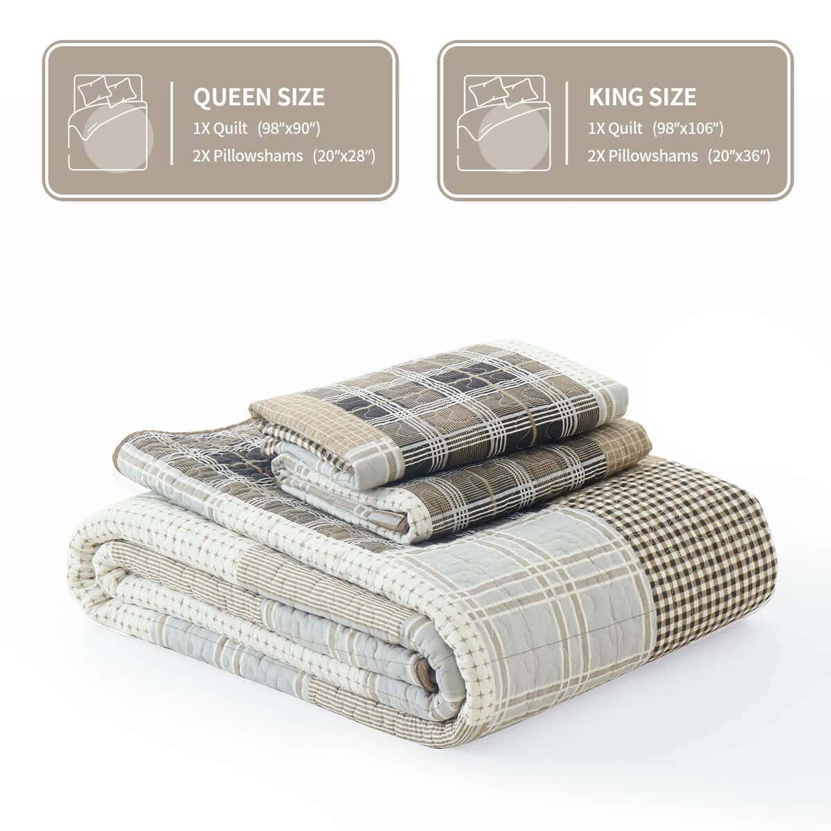 Juego de edredón KALOOLA a cuadros para cama king, 100%