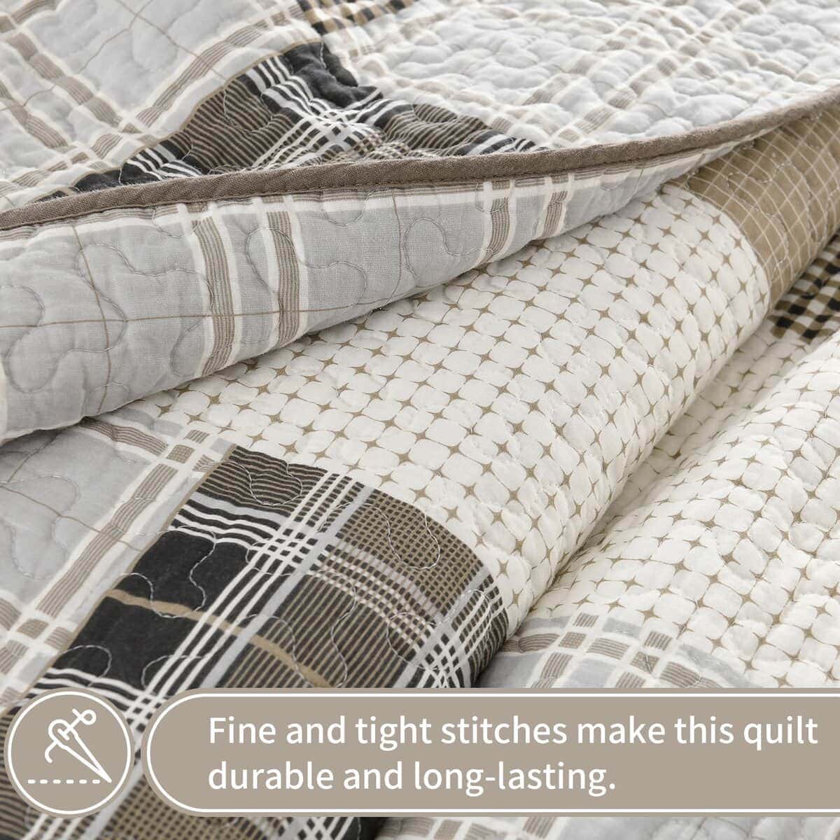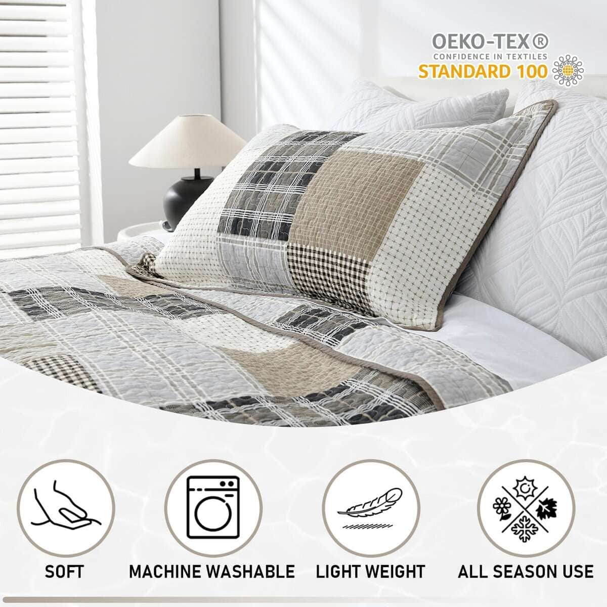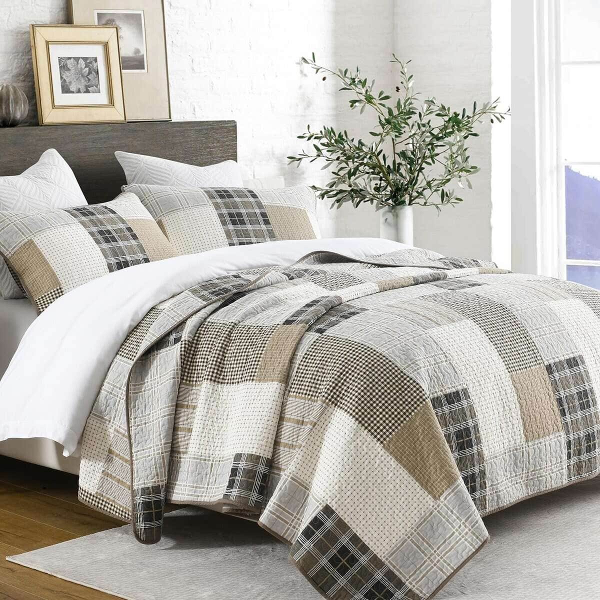 Juego de edredón KALOOLA a cuadros para cama king, 100%