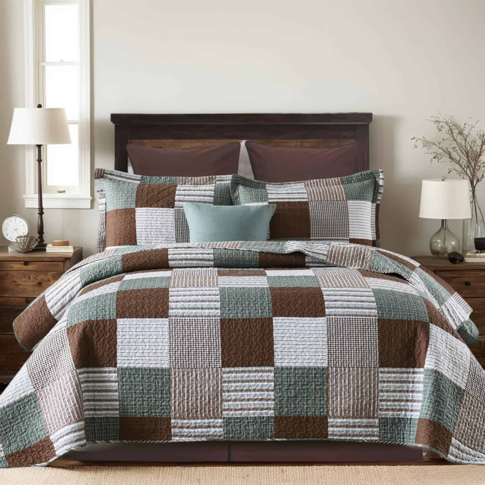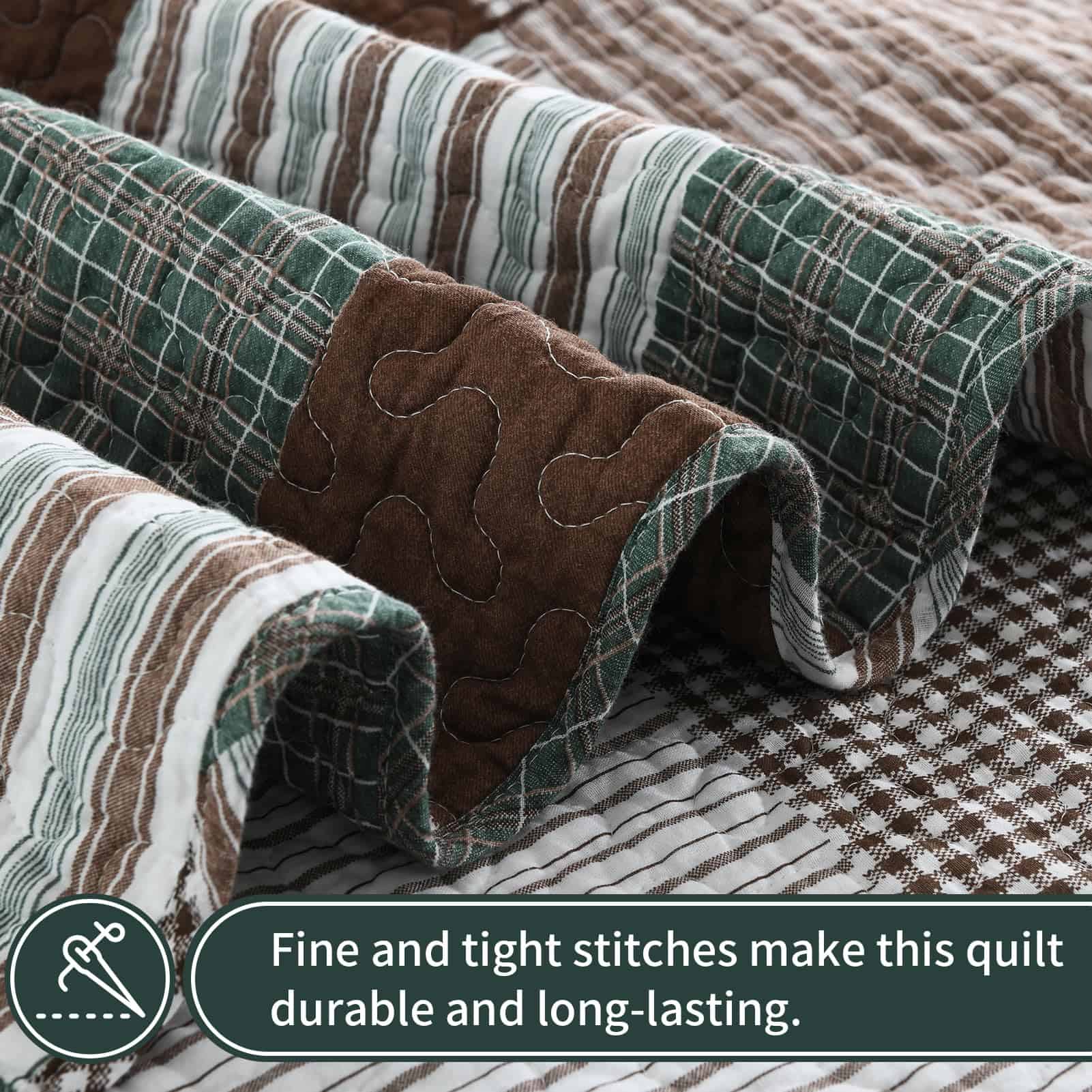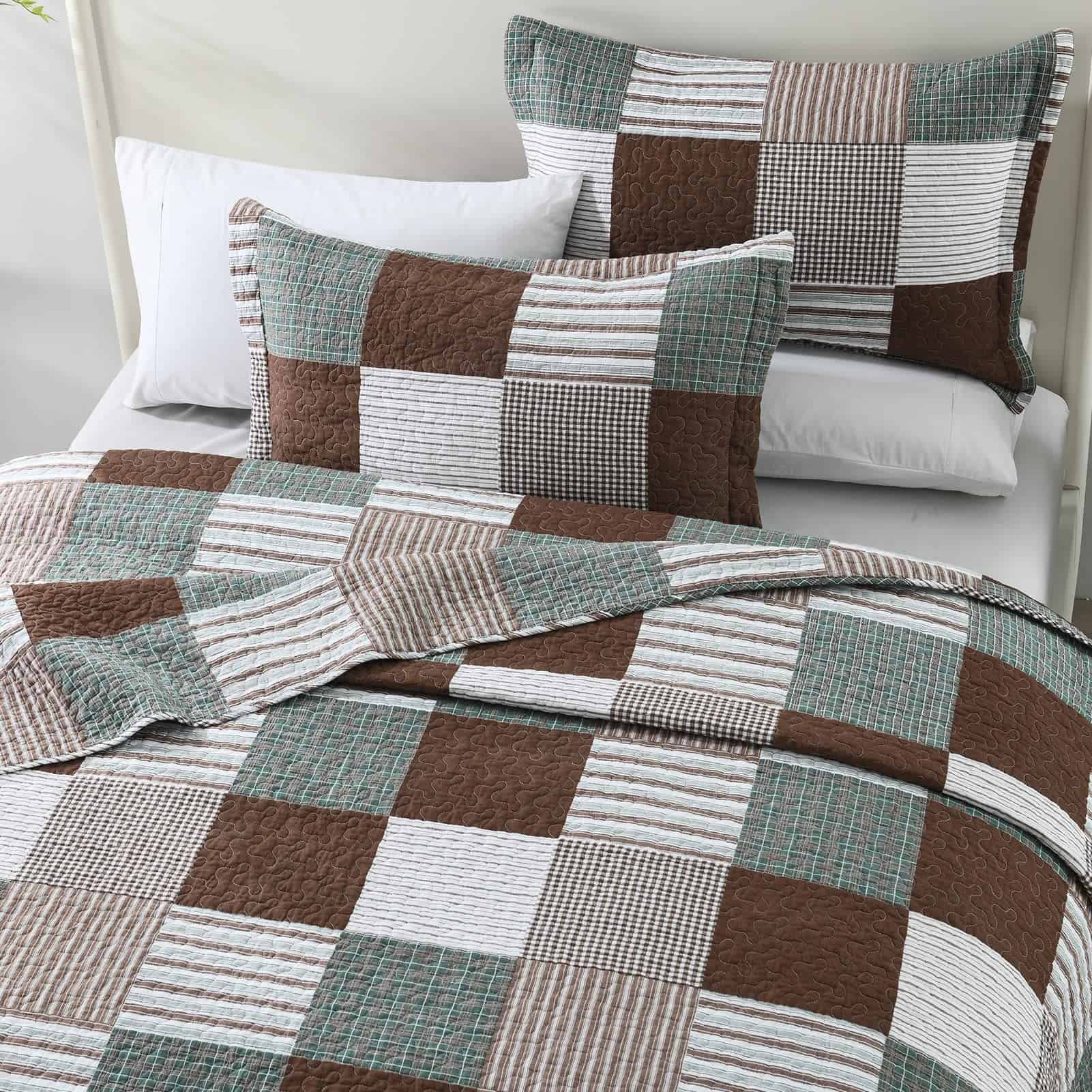 Con su transpirabilidad natural y propiedades hipoalergénicas, este edredón de algodón al 100% para cama queen es una excelente opción para aquellos que buscan una experiencia de sueño cómoda y saludable, especialmente para los que duermen calientes. Este edredón tamaño queen está diseñado con un patrón de cuadros verdes y marrones. Puede añadir un toque de elegancia a cualquier decoración de dormitorio. El diseño simple pero versátil es adecuado para una variedad de estilos interiores. En días calurosos, puedes usarlo solo para acompañarte a dormir. En clima más frío, no solo sirve como decoración en la cama, sino que también proporciona calor adicional. Su excelente transpirabilidad y ligereza evitan los sudores nocturnos y la incomodidad, garantizando una experiencia de sueño confortable. Nuestro juego de edredón tamaño queen incluye: 1 Edredón (90 x 98 pulgadas) + 2 Fundas de Almohada (20 x 28 pulgadas). Un set completo puede simplificar tu proceso de selección y mejorar el atractivo estético global y la coherencia estilística de tu ropa de cama. Este juego de ropa de cama está prelavado, ofreciendo un mejor tacto y reduciendo efectivamente el posterior encogimiento y decoloración. Lavar a máquina el juego de edredón por separado en agua fría. Secar al aire o en secadora a temperatura baja. Evitar el blanqueo para mantener su calidad. Después de múltiples lavados, el edredón de algodón se volverá más suave. Nuestros juegos de ropa de cama han pasado la certificación estándar 100 de OEKO-TEX, garantizando que los productos están libres de sustancias nocivas, permitiéndote usarlos con tranquilidad. Si tienes alguna pregunta sobre nuestros juegos de edredón, no dudes en contactarnos. Responderemos a tus consultas lo antes posible y te proporcionaremos un servicio de alta calidad
