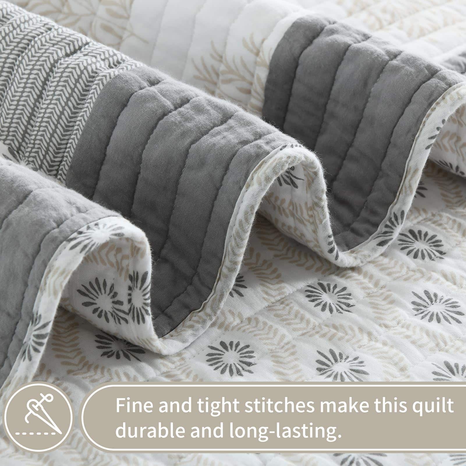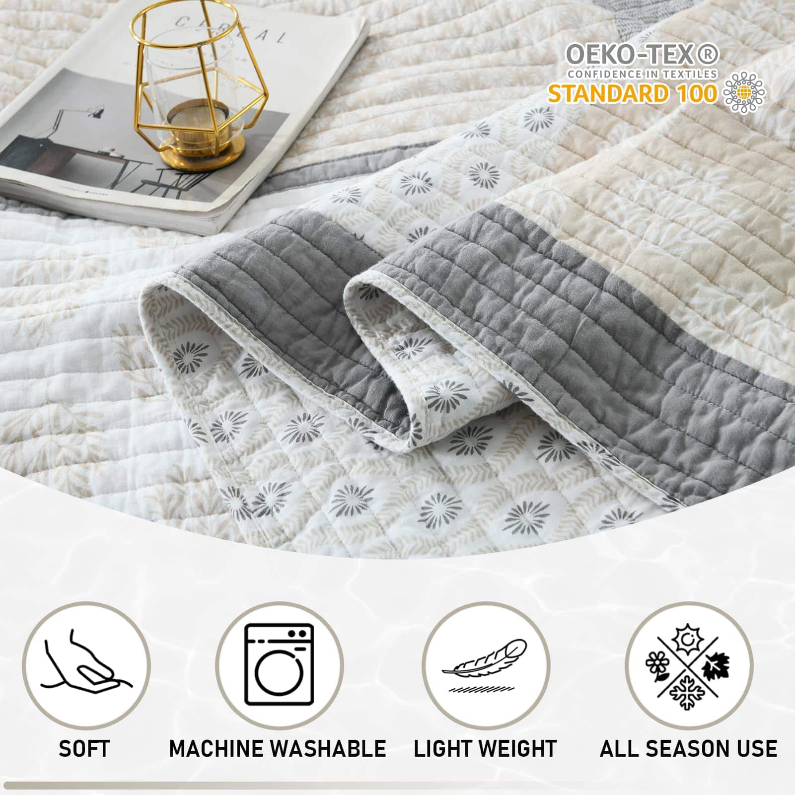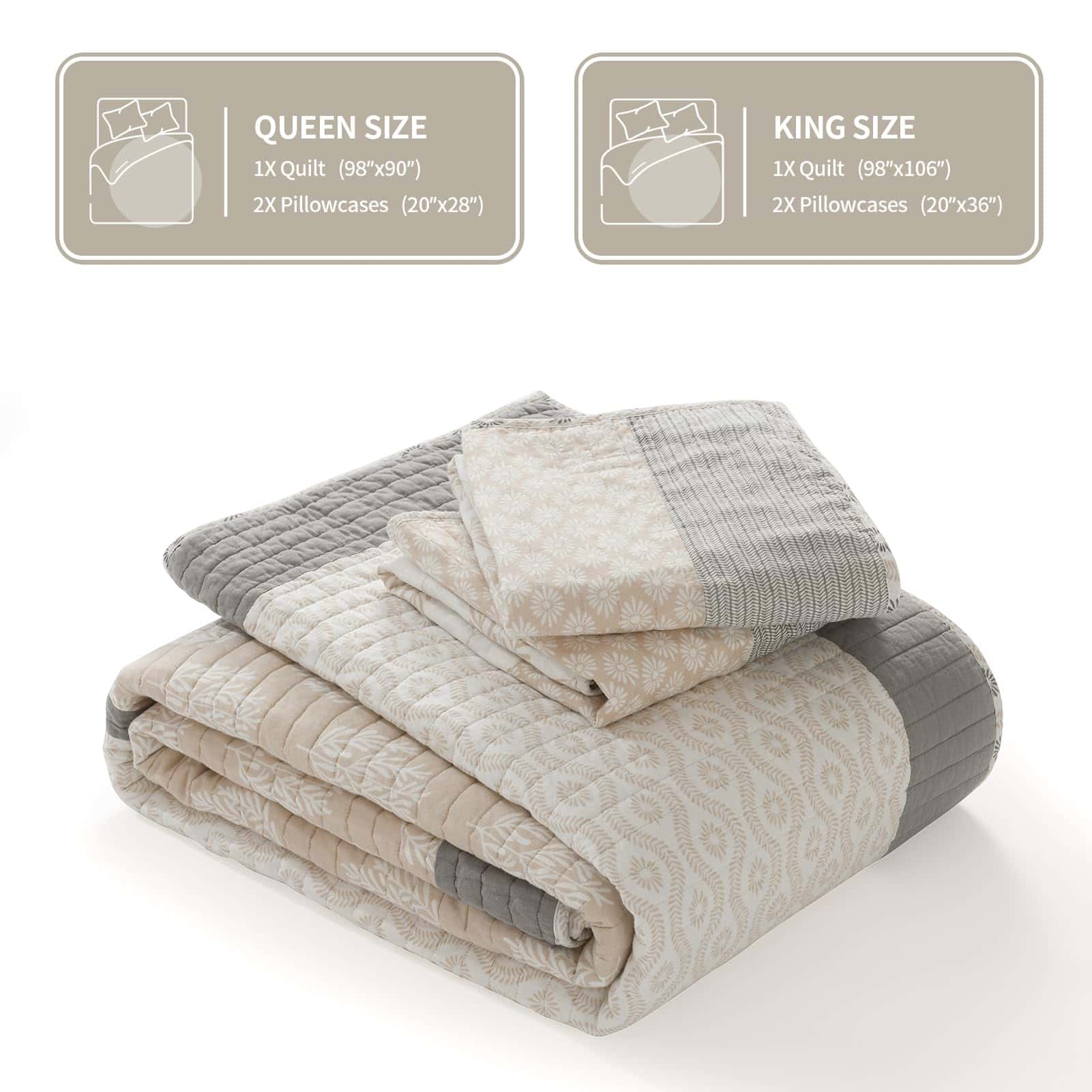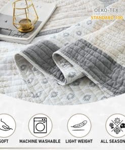 El juego de cama KALOOLA incluye un edredón de algodón 100% tamaño queen con propiedades hipoalergénicas y transpirables, perfecto para aquellos que buscan una experiencia de sueño cómoda y saludable. El color suave y relajante de luna creciente agrega un toque suave y sereno a cualquier habitación, combinando elementos de casa de campo con delicados patrones florales para crear una atmósfera cálida y acogedora. Este juego de colchas es ideal para días cálidos por sí solo o en invierno con un edredón adicional debajo para mayor calidez. Se combina perfectamente con otras piezas de ropa de cama para un aspecto personalizable. Incluye 1 edredón (90″ x 98″) + 2 fundas de almohada (20″ x 28″) para simplificar su proceso de selección y mejorar la apariencia estética y coherencia estilística de su ropa de cama. Lavar a máquina por separado en agua fría y secar en línea o en secadora a baja temperatura. Evitar el blanqueo para mantener su calidad. Siga estos pasos para mantener la frescura y belleza duraderas. Los conjuntos de ropa de cama han pasado la certificación OEKO-TEX Standard 100, asegurando que los productos estén libres de sustancias nocivas, lo que le permite usarlos con tranquilidad. Si tiene alguna pregunta sobre nuestros juegos de edredón, comuníquese con nosotros. Responderemos a sus consultas lo antes posible y le brindaremos un servicio de alta calidad.