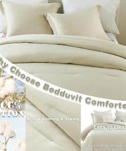Juego de edredón King Bedduvit, Edredón de algodón beige