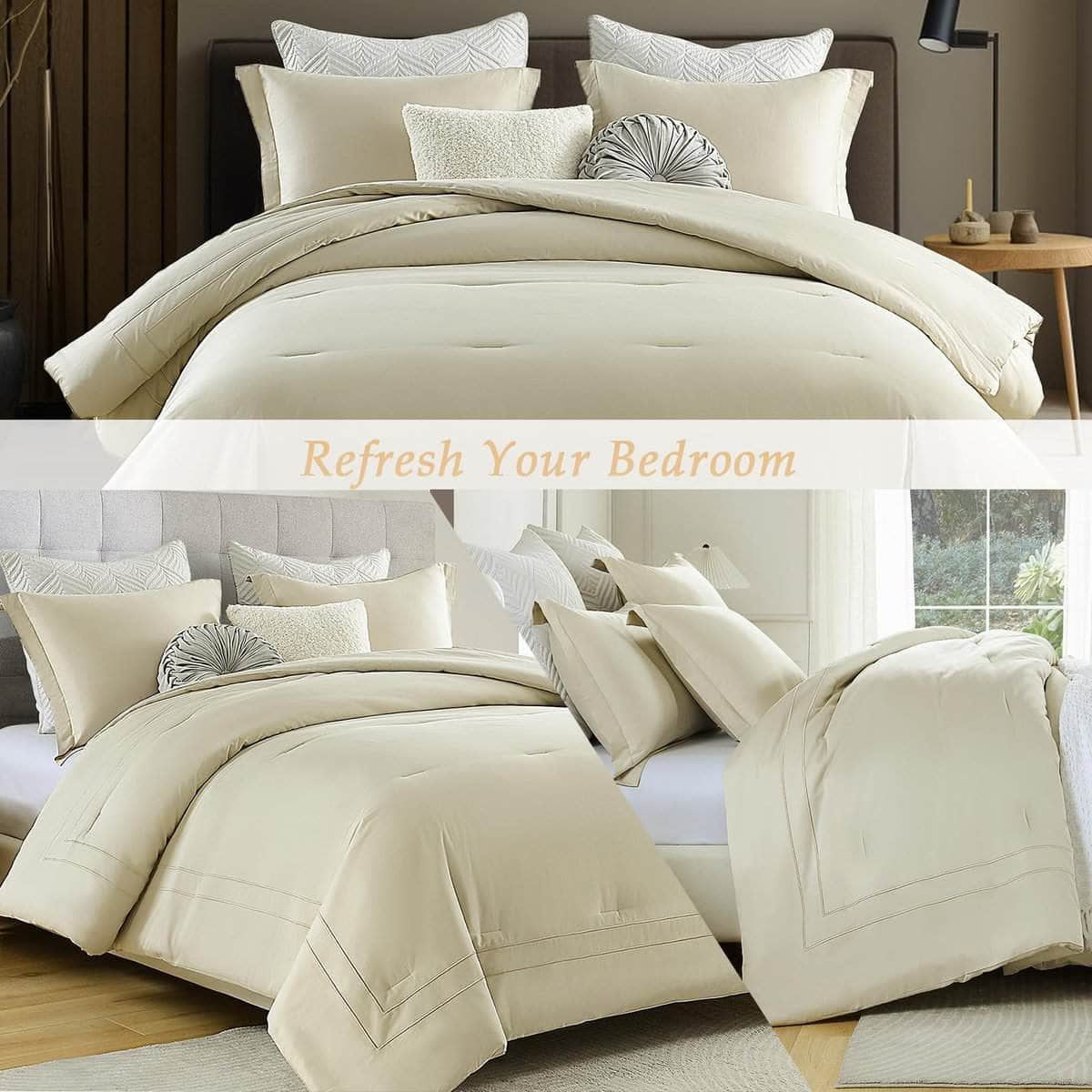 Este juego de edredón king de lujo color beige presenta un elegante diseño de bordado de cuadros y costuras resistentes, asegurando una distribución uniforme del relleno y evitando que se desplace. El juego de edredón de algodón agrega un toque artístico que complementa perfectamente la decoración de su habitación. Ideal para uso durante todo el año, el juego de edredón beige lo mantendrá abrigado en invierno y es apto para usar en verano. Nuestros juegos de edredón de ropa de cama se pueden utilizar directamente sin la necesidad de una funda. Reduzca su tiempo en hacer la cama. Además de ser un edredón alternativo king con su funda de edredón favorita.