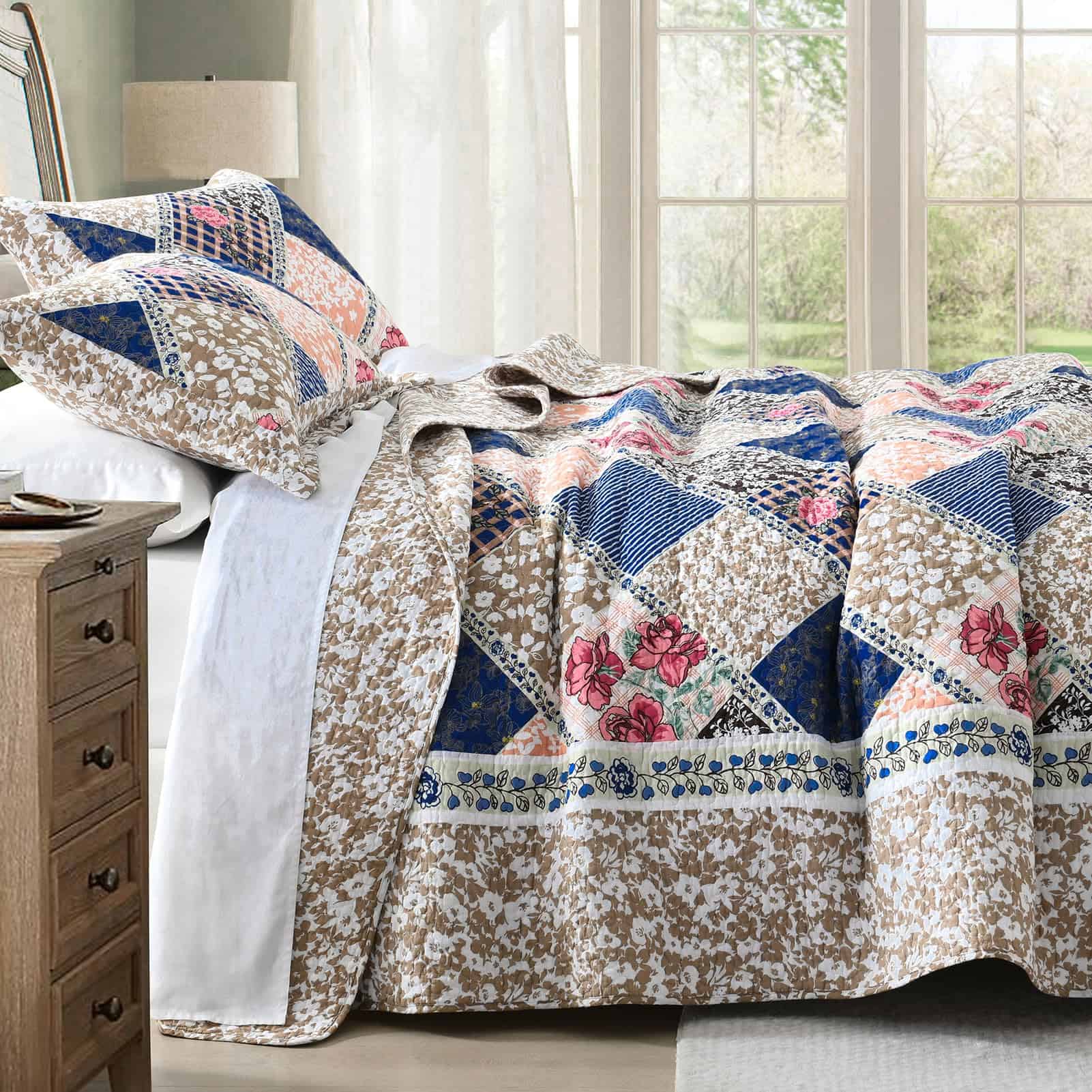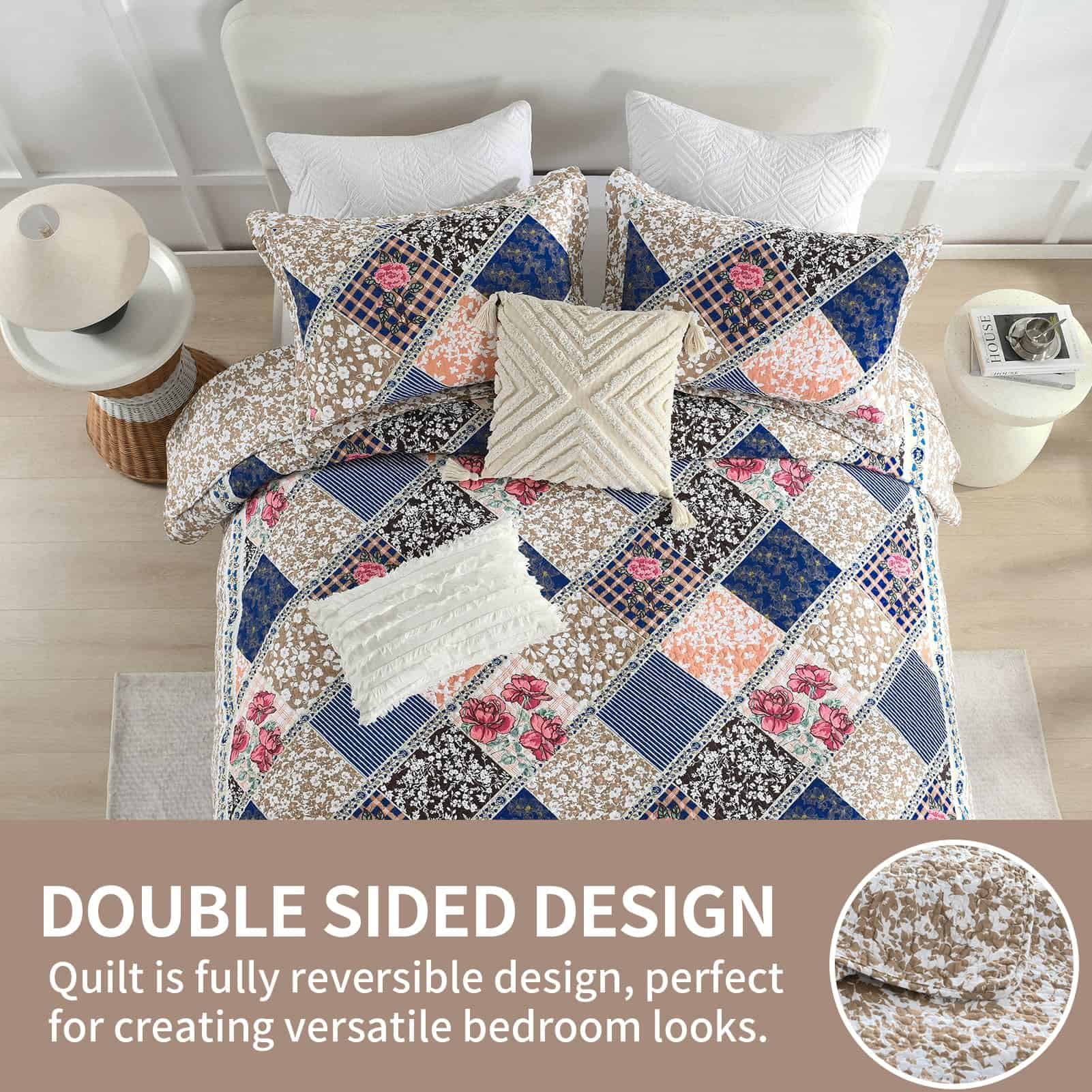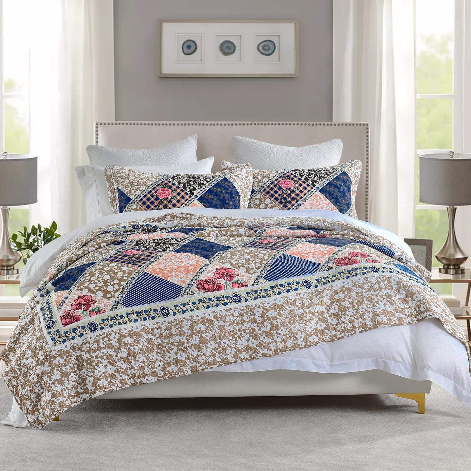 Juego de Edredón King DDUOXIN Farmhouse -Azul Marino Marrón