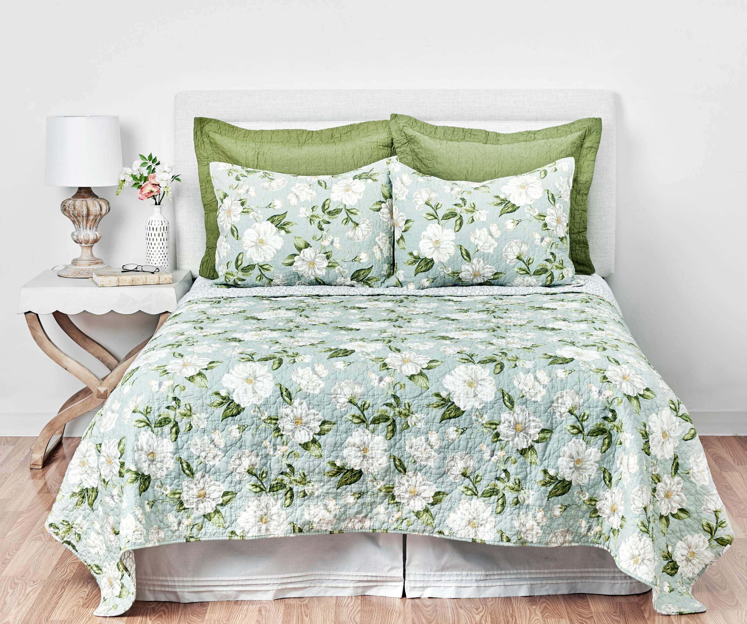 Juego de Edredón King de 3 Piezas en Tonos Verdes y Blancos