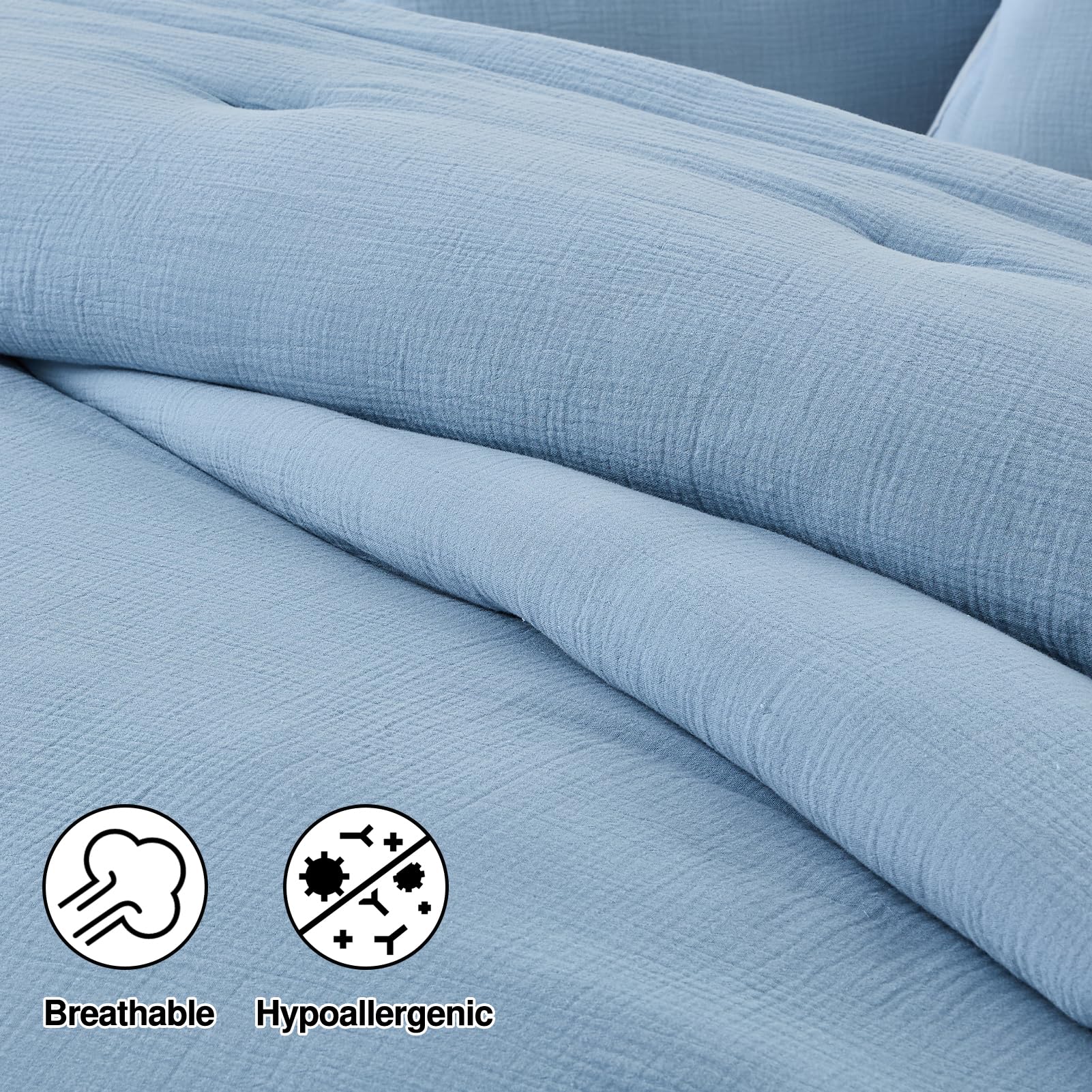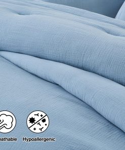 1. Material de Algodón Gasa: El edredón cuenta con un frente de algodón gasa y un reverso de algodón. El frente está hecho de algodón gasa ligero y transpirable, que ofrece una sensación suave y aireada. El reverso está construido de algodón estándar, proporcionando un toque clásico y cómodo.
