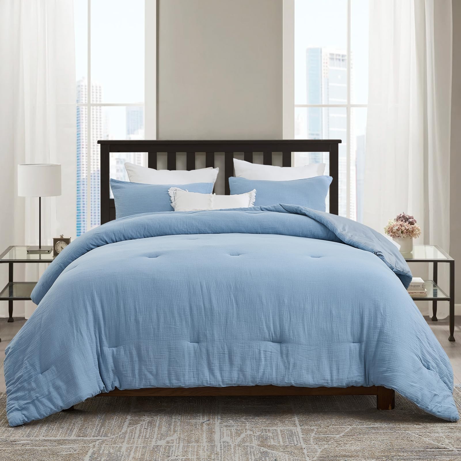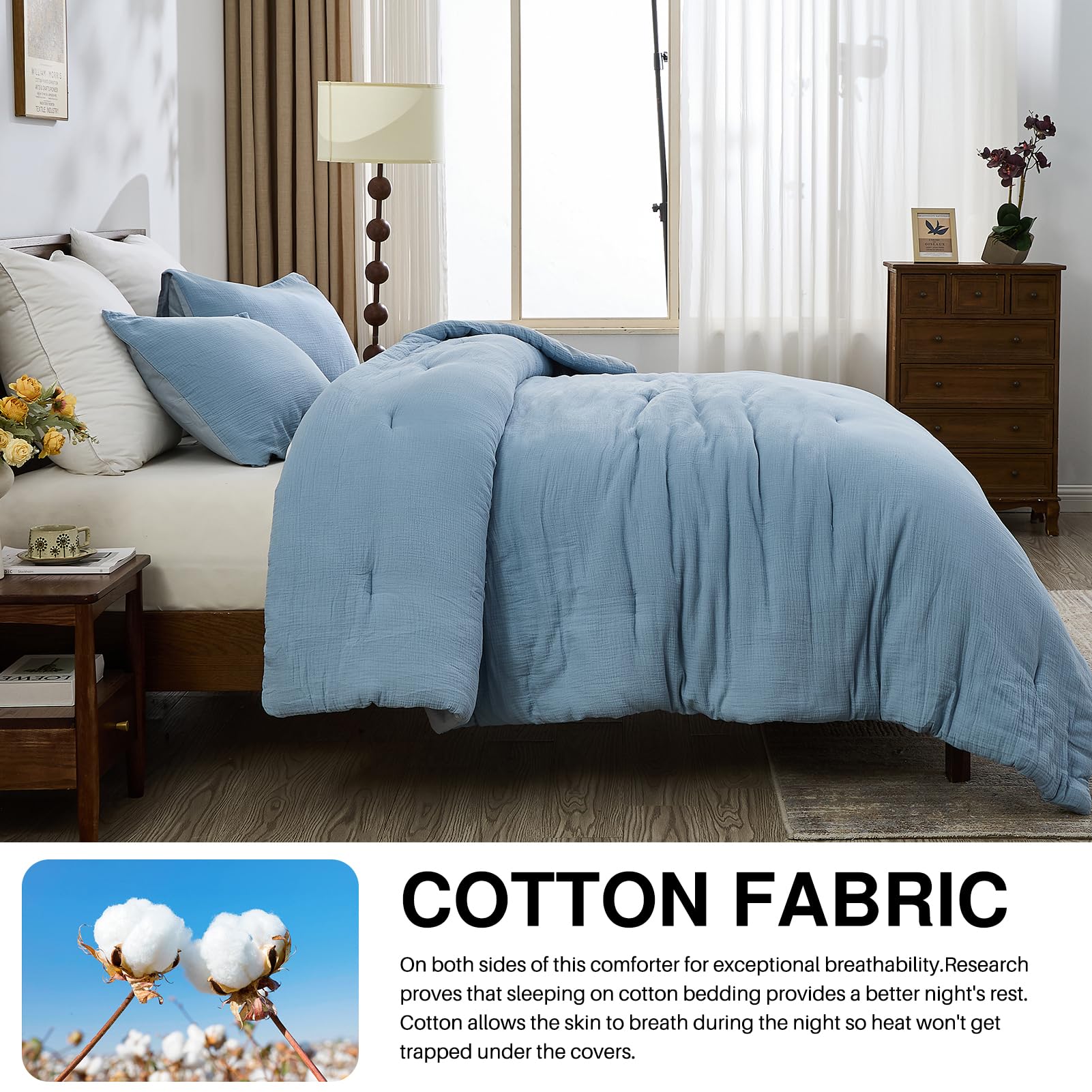 El Juego de Edredón King de Algodón DDUOXIN en un tono grisáceo azul ofrece una combinación de materiales de alta calidad para garantizar un confort excepcional y una estética elegante. Con un frente de algodón gasa ligero y transpirable y un reverso de algodón estándar clásico, este edredón proporciona una sensación suave y aireada junto con un toque de lujo duradero. El elegante tono liso agrega un toque de sofisticación a cualquier dormitorio, mientras que las 2 fundas de almohada estilo sobre complementan el diseño con estilo y comodidad. Disfruta de la excepcional calidez y confort que ofrece este conjunto de edredón durante todas las estaciones. El cuidado es sencillo, ya que puedes lavar el edredón en agua fría y secarlo al aire para mantener su elegancia y suavidad. Completa tu dormitorio con este elegante juego de 3 piezas que combina estilo y funcionalidad para brindarte un descanso reparador y un toque de belleza atemporal.