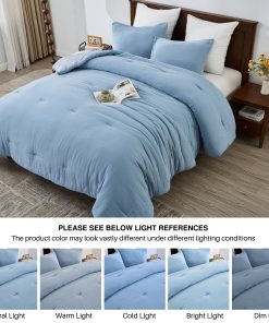 6. Cuidado Fácil Lave el edredón en agua fría en un ciclo suave. Evite el blanqueador y los detergentes fuertes. Después de lavar, colóquelo en posición plana para que se seque al aire lejos de la luz solar directa y el calor alto. Si utiliza una secadora, elija baja temperatura y baja velocidad. No planche. Sacuda con regularidad para mantenerlo esponjoso y reducir las arrugas.