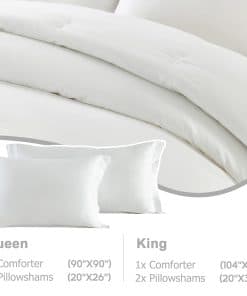 Este juego de edredón tamaño king es ideal para usar durante todo el año, mantenerse cálido en el invierno y fresco en el verano. El edredón presenta un diseño acolchado para una distribución uniforme del relleno en su interior, y una costura firme evita que el relleno se desplace para garantizar un uso a largo plazo. Este juego de edredón king incluye 1 edredón (104″ x 90″) y 2 fundas de almohada (20″ x 36″ + 2″). El edredón es durable y fácil de mantener, lavar a máquina en ciclo suave con agua fría y secar a baja temperatura para una restauración como nueva, no usar blanqueador para mantener el color vibrante. Este edredón de tamaño king está certificado Standard 100 por OEKO-TEX por cumplir con los criterios de prueba más altos para productos químicos dañinos y se ha encontrado inofensivo para los humanos. Con costuras uniformes y densas, esta ropa de cama duradera garantiza una satisfacción duradera. Si, por alguna razón, no estás satisfecho, infórmanos rápidamente para una devolución sin problemas. ¡Añádelo a tu cesta ahora y experimenta la comodidad suprema de un edredón Finlonte!