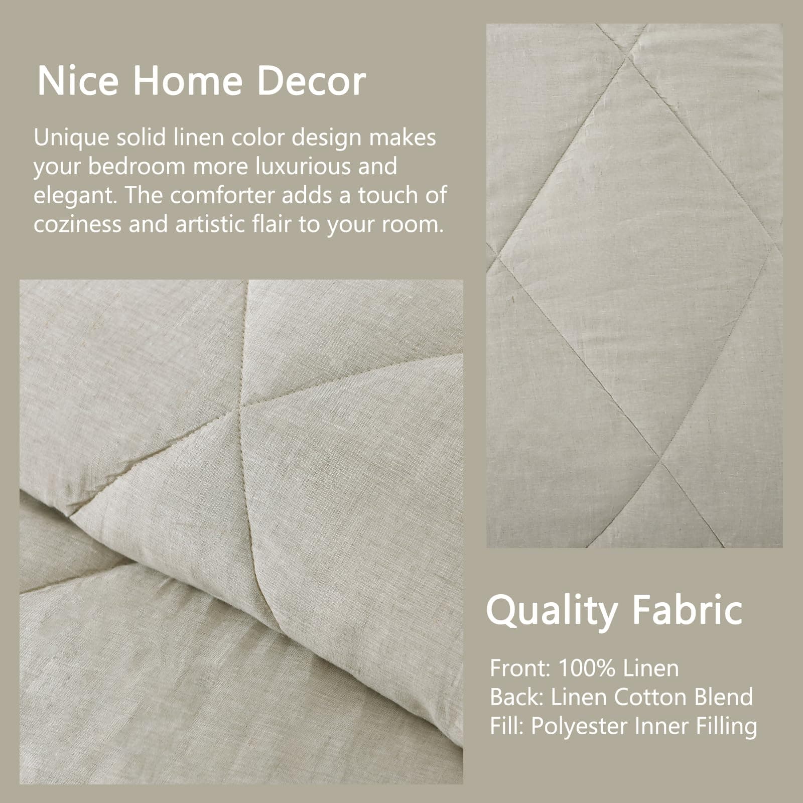1. Suavidad y Comodidad: El juego de edredón king cuenta con una parte delantera de lino puro, proporcionando una superficie natural y transpirable. La parte trasera está hecha de un suave y duradero tejido de lino y algodón, ofreciendo mayor comodidad y una sensación de lujo. El relleno está hecho de poliéster de alta calidad, asegurando una increíble comodidad y calidez. El edredón de lino puede ser más hipoalergénico, regular la temperatura y transpirable.