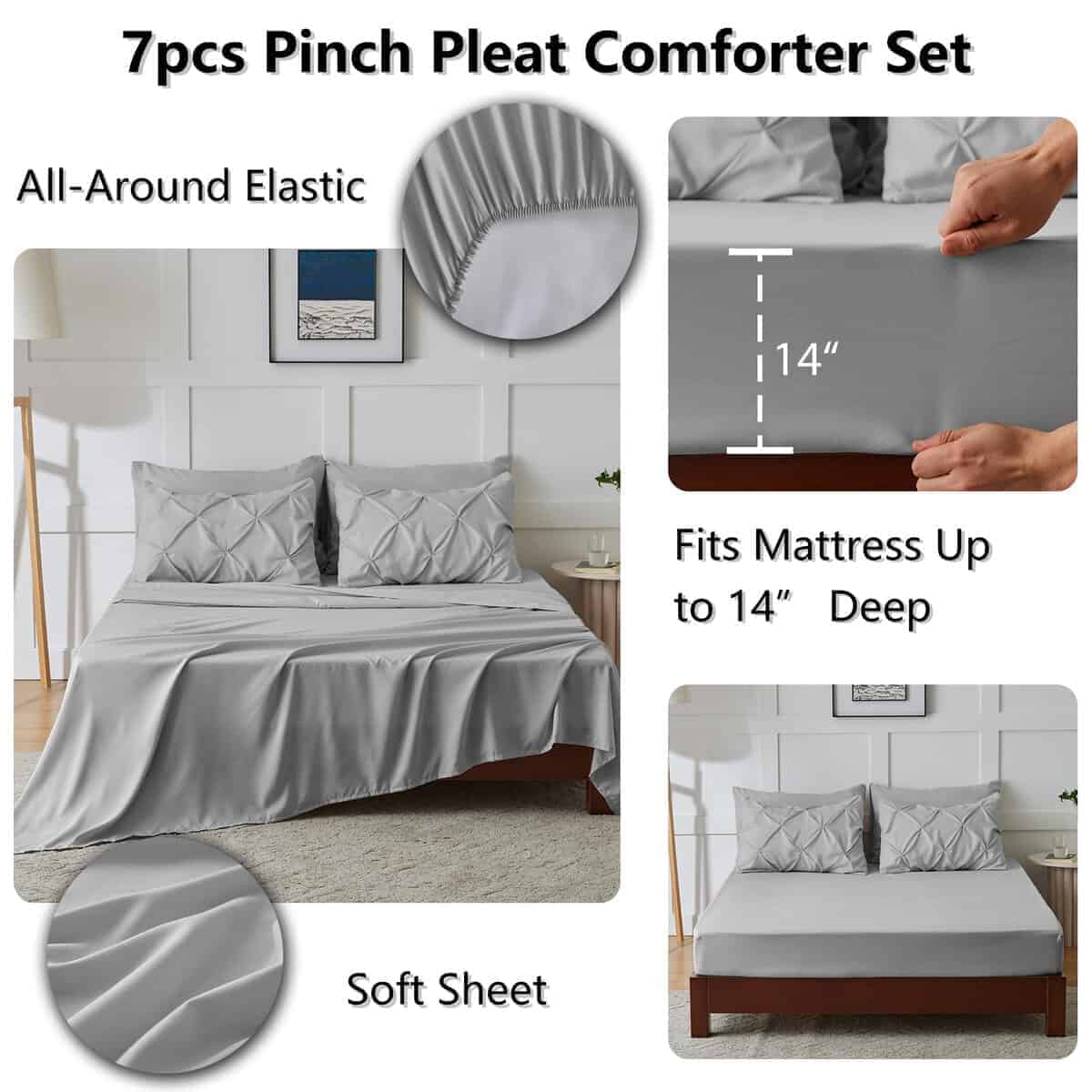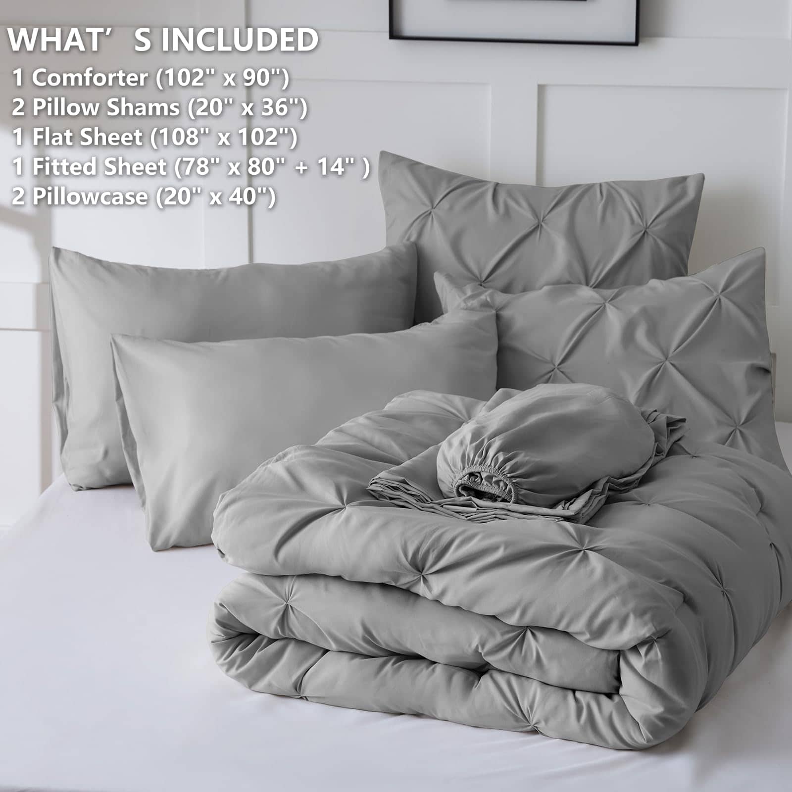Juego de Edredón King Gris HIMEET 7 Piezas Edredón Gris