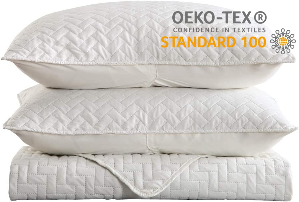3. Juego de edredón de 3 piezas de alta calidad – El edredón de tamaño King mide 92 x 104 con dos fundas de almohada de 20 x 36.