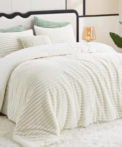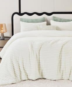El Juego de Edredón King Size CozyLux ofrece una experiencia de comodidad y calidez sin igual. Con una textura suave y esponjosa, este edredón de piel sintética en color crema para cama queen te envolverá en una sensación similar a estar rodeado de gatos dormilones. Con franela esponjosa en un lado y terciopelo cristalino en el lado opuesto, este edredón abraza una experiencia nubosa. El relleno de alternativa de plumón proporciona un sueño cálido y cómodo.