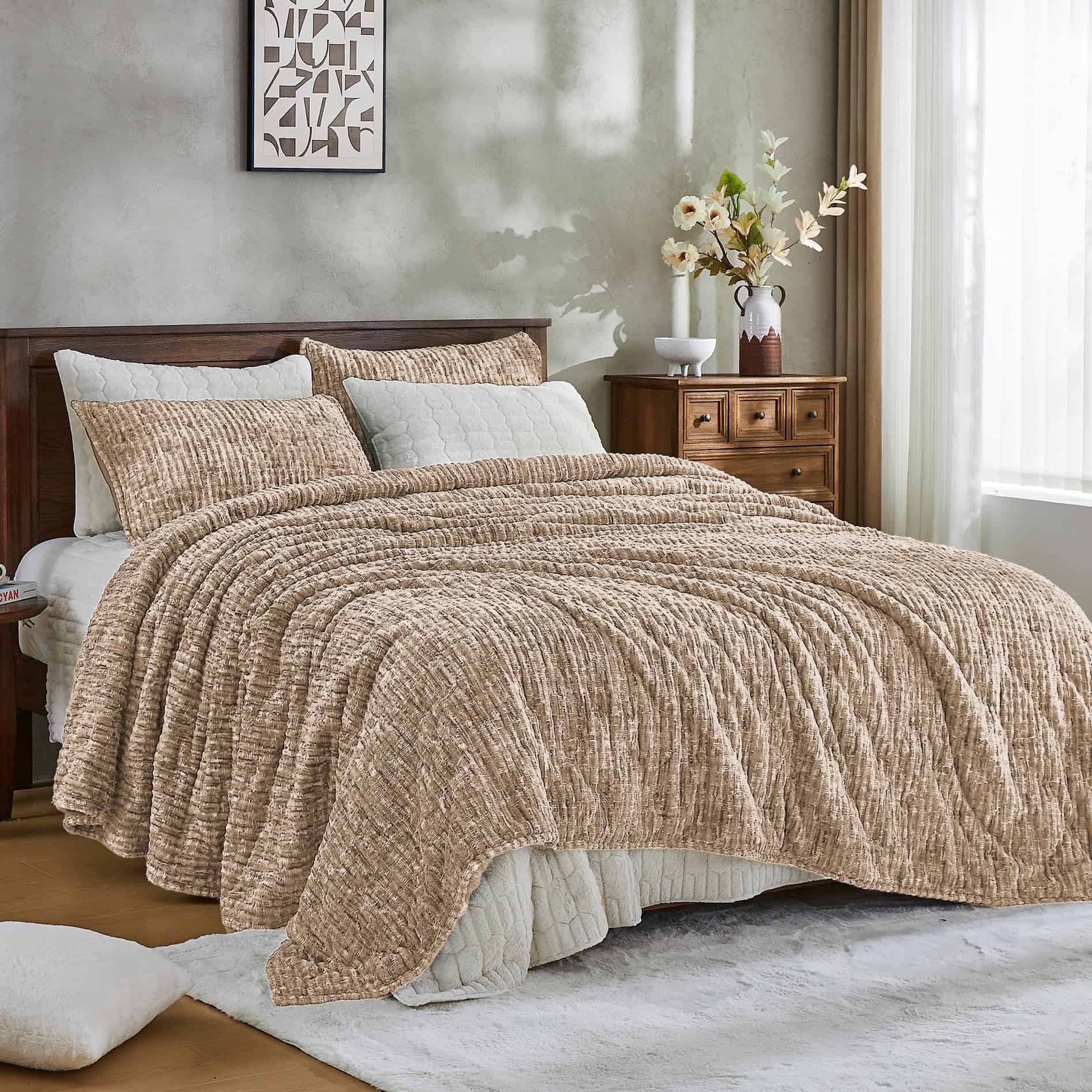 4. Lujo Asequible y Tamaño Generoso: Nuestro edredón tamaño King (106″x94″) con dos fundas de almohada (20″x36″) brinda cobertura completa para tu cama. Disfruta de la elegancia y calidad de un edredón de terciopelo de alta gama sin la etiqueta de precio abultada. Este edredón brinda una experiencia lujosa que es a la vez elegante y amigable con el presupuesto, haciéndolo una inversión inteligente para cualquier dormitorio.