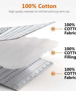 1. Edredón de Algodón 100% – La tela y el relleno están hechos de algodón natural al 100%. El algodón natural es más suave, más transpirable y amigable con la piel, más duradero y adecuado para todas las edades. Siéntete cómodo y cálido bajo este juego de ropa de cama mientras duermes.