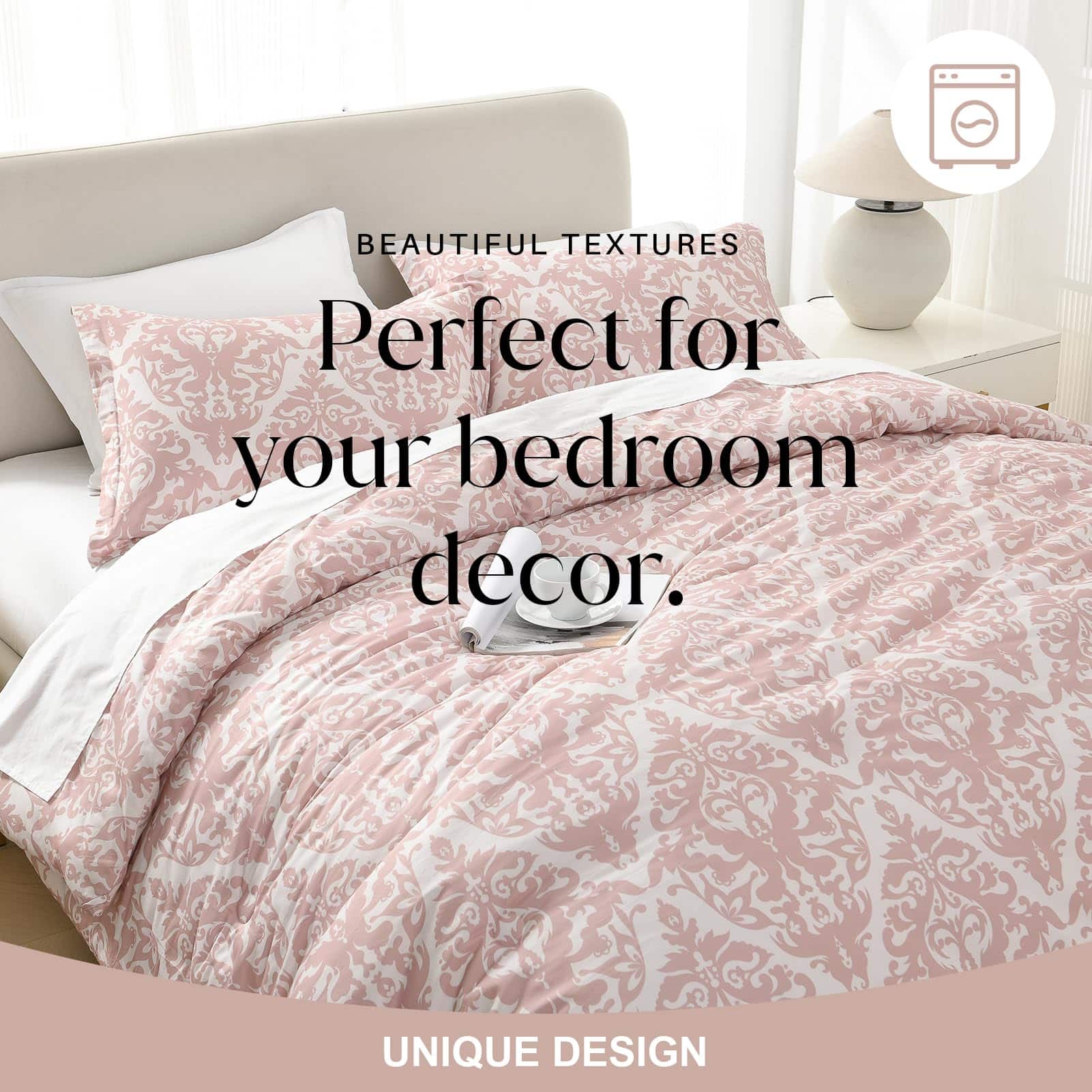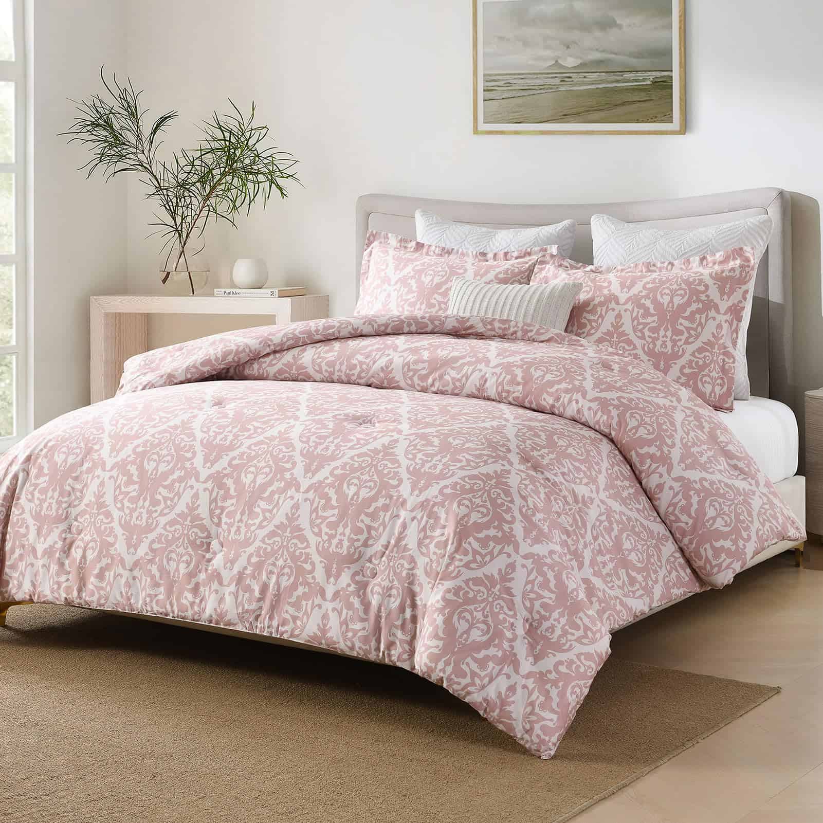 Juego de edredón King Size FineStichery – -Rosa/Blanco