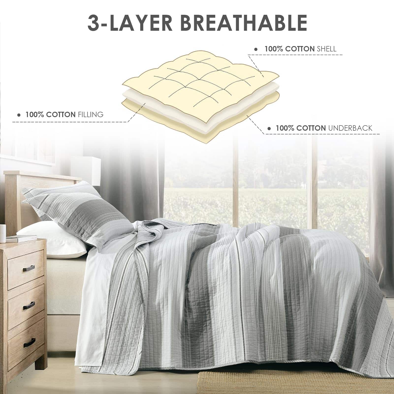 3. Uso de Todas las Estaciones – El acolchado de tres capas y el relleno de algodón 100% en el interior hacen que este juego de edredón sea ligero pero cálido, adecuado para primavera, verano, otoño, invierno y se puede usar como juego de edredón, juego de cubrecamas, colcha y juego de edredón. Se puede usar solo o con manta o edredón. Las costuras ordenadas y firmes garantizan un uso a largo plazo.