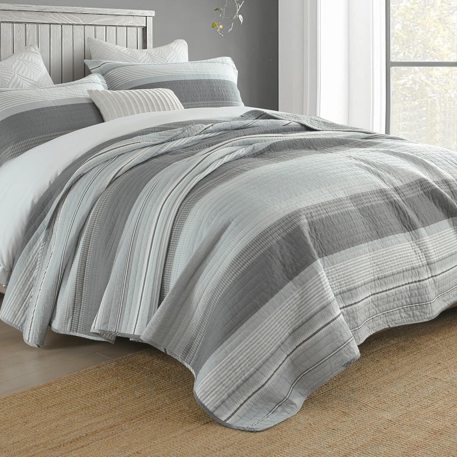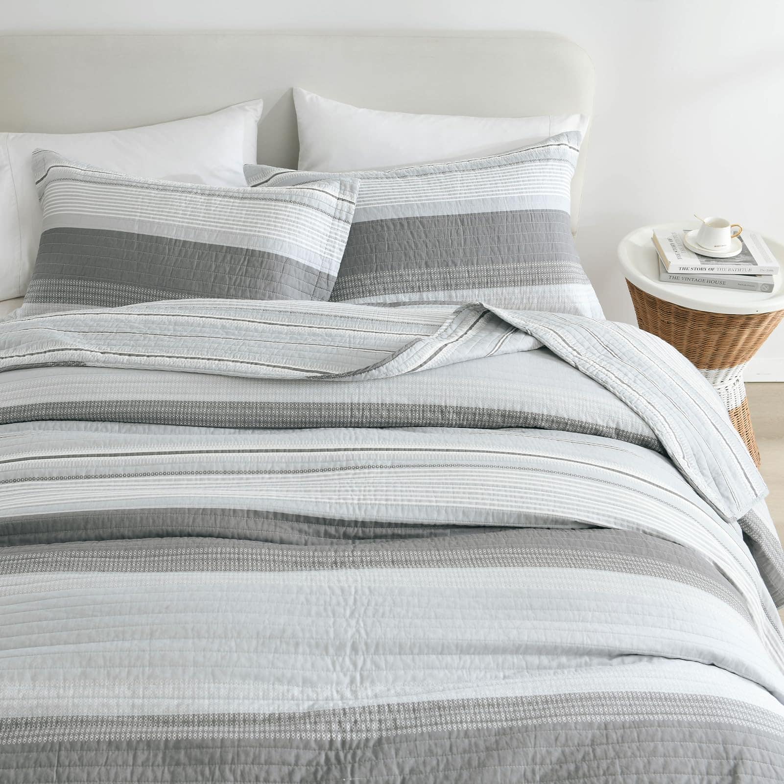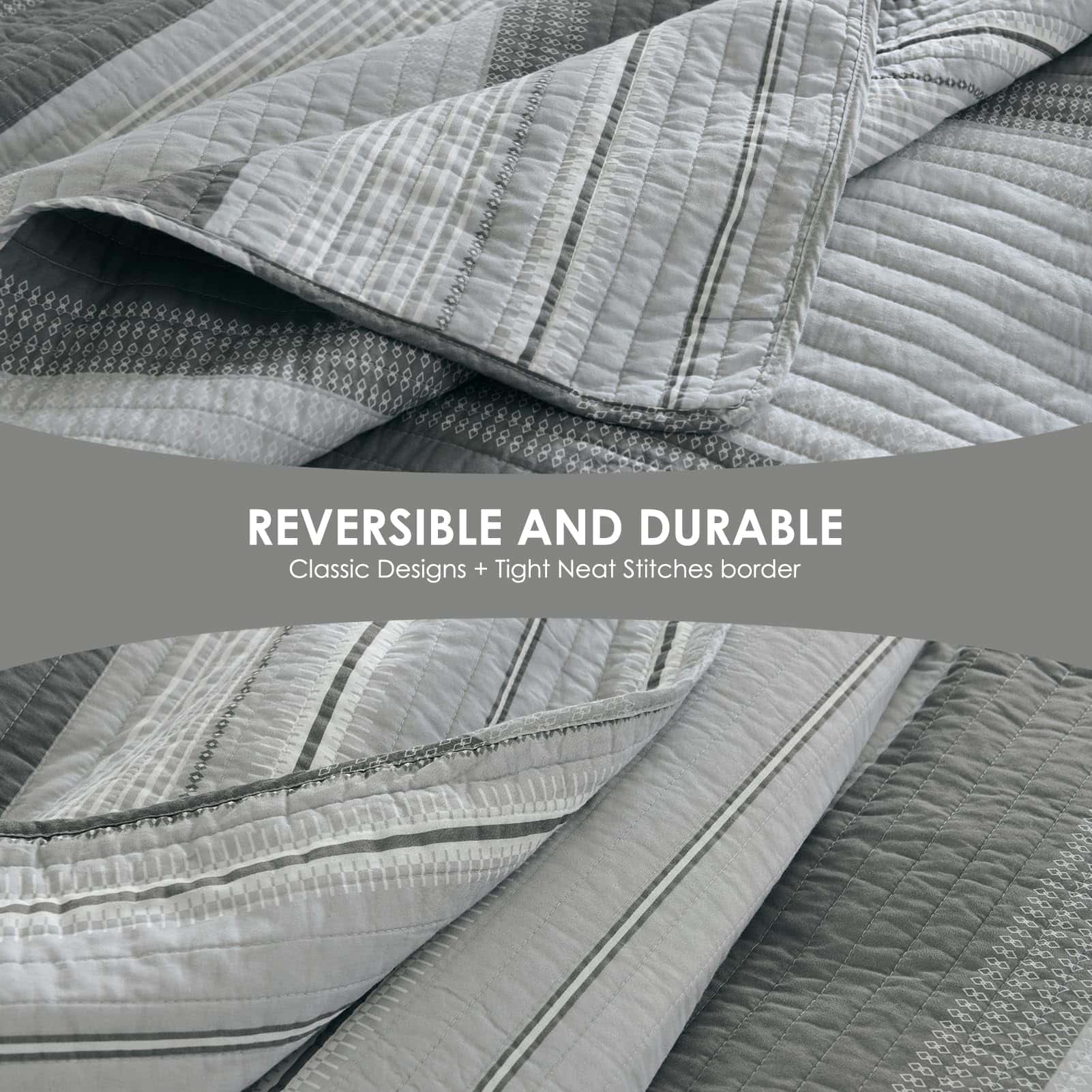 2. Decoración del Hogar – Este clásico juego de edredón multicolor en gris oscuro y gris claro diseñado con patrones a rayas le da un aspecto nuevo a tu habitación. Este juego de edredón decorativo puede ir bien con la decoración de tu dormitorio, sala de estar, dormitorio principal, habitación de invitados, estudio, estudio, dormitorios universitarios y RVs. Tanto para exteriores como para interiores.
