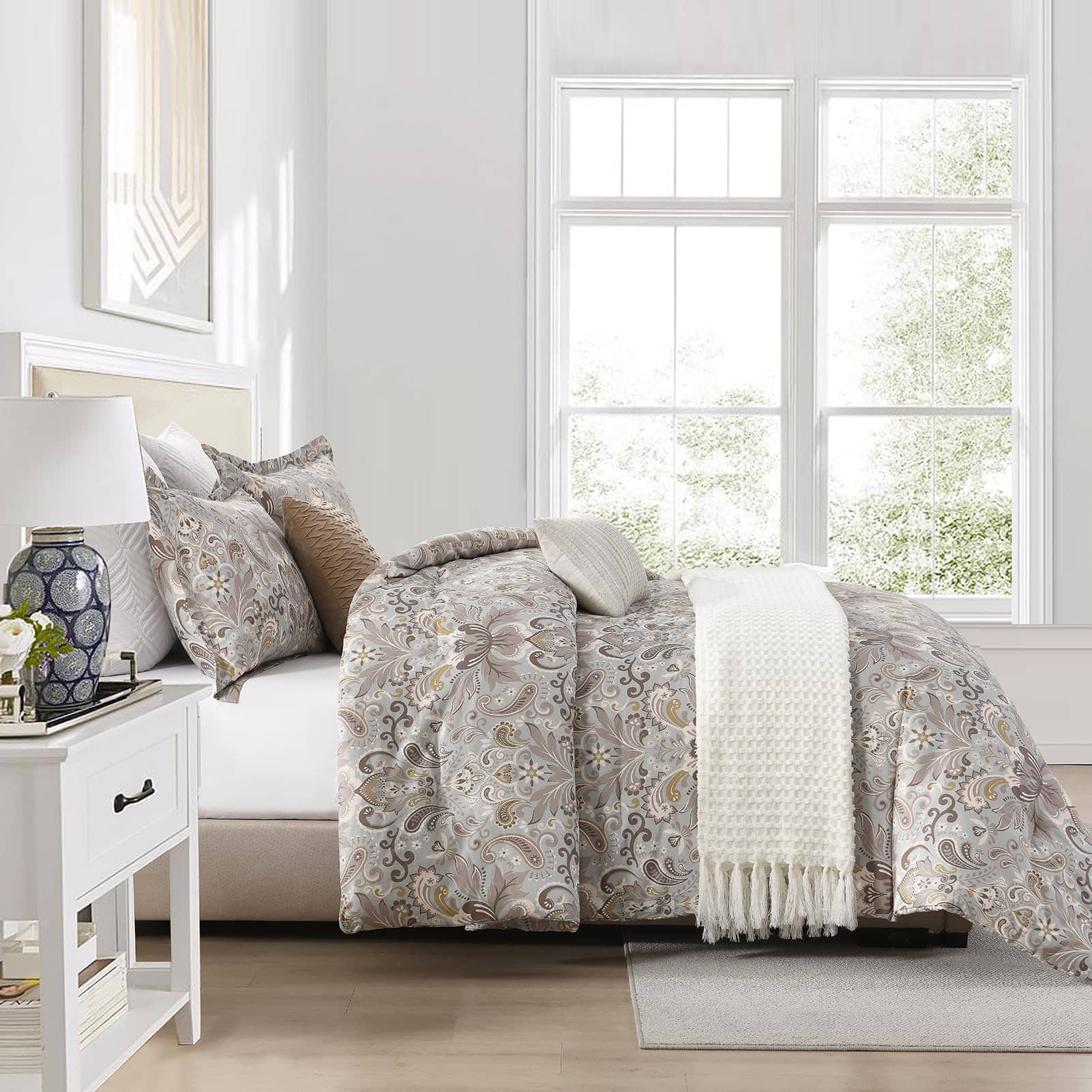 4. Juego de Edredón King de 3 Piezas Incluye: 1 Edredón: 104″ x 90″; 2 Fundas de almohada: 20″ x 36″.