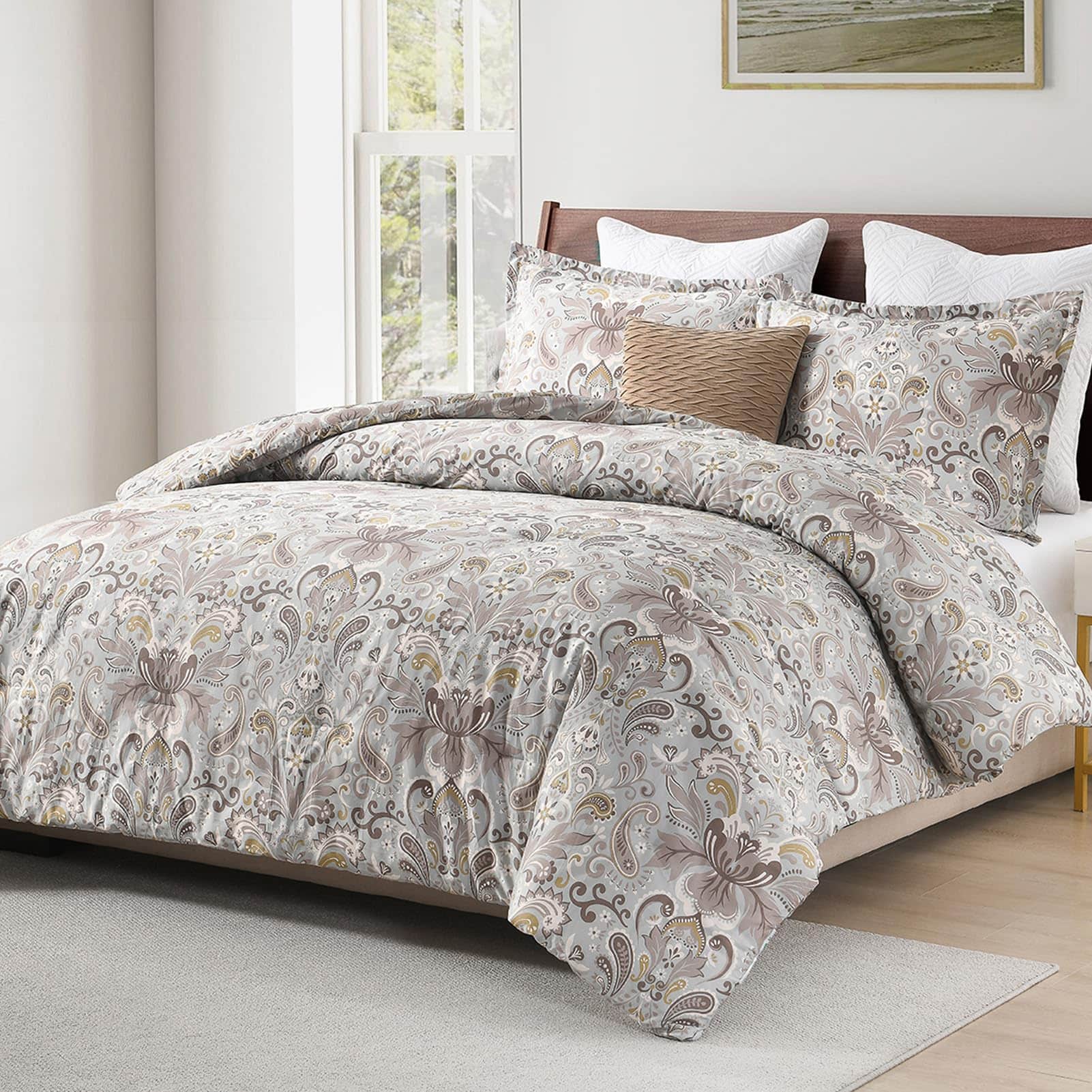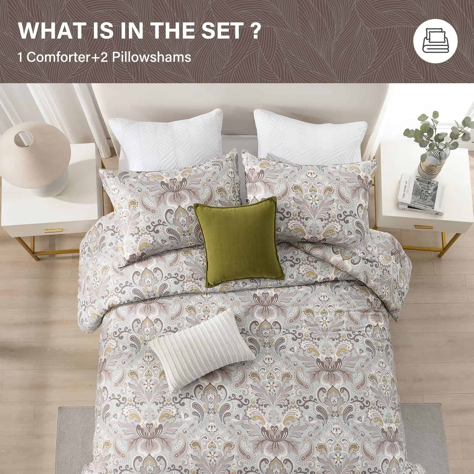 2. Diseños Únicos: lujoso edredón de patrón de paisley de algodón sedoso. Ambos lados diseñados con ricos y vívidos patrones florales damasco en tonos naranja/azul/verde multicolor sobre una tela gris suave. El color elegante y el diseño clásico hacen que este edredón sea adecuado para una amplia gama de decoraciones de habitaciones. Este edredón agrega un toque de estilo vintage y artístico a tu habitación. Dale a tu habitación un nuevo aspecto. Ideal para dormitorio, habitación principal, habitación de invitados, dormitorio universitario, interiores, campamentos y caravanas.