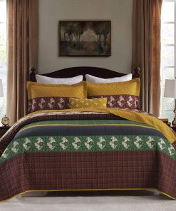 Juego de Edredón King Size SahSahCasa, -Verde Oscuro / Marró