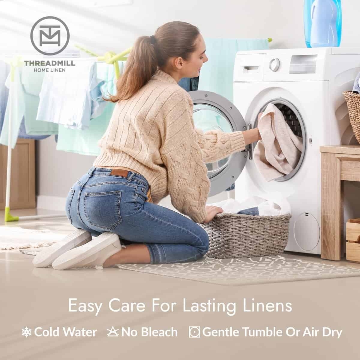 2. Confía en los tejidos puros: Disfruta de tu elegante nuevo juego de edredón cada vez que entres en la habitación, no solo por su aspecto atractivo, sino también sabiendo que está elaborado con cuidado utilizando materiales y procesos respetuosos con el medio ambiente. El equipo de Threadmill Home Linen se preocupa verdaderamente por tu bienestar y el de la Tierra, por lo que nos esforzamos por utilizar solo los métodos y productos más seguros y puros, sin químicos ni contaminantes que dañen. Siéntete bien acerca de tus productos para el hogar en todos los sentidos.