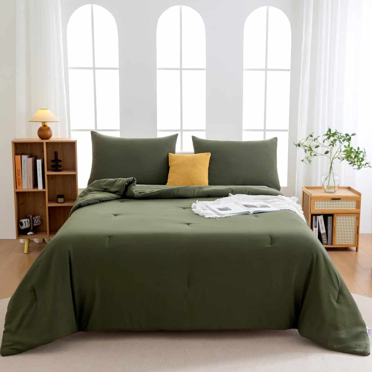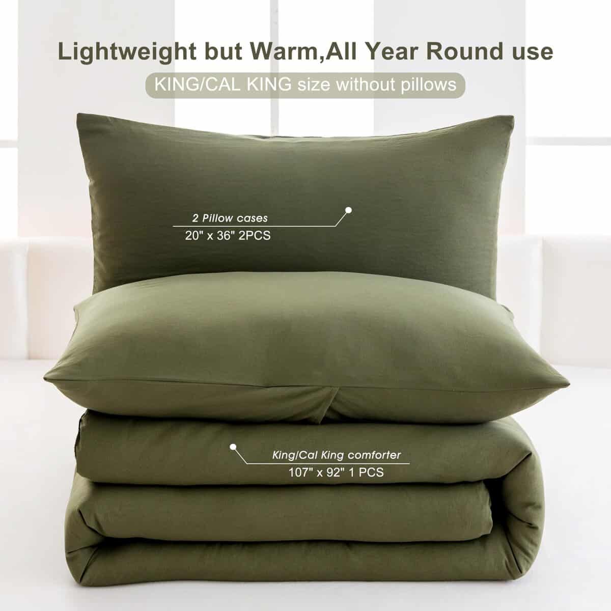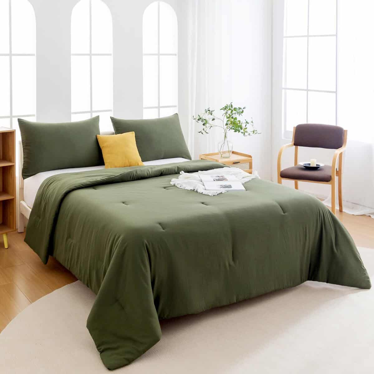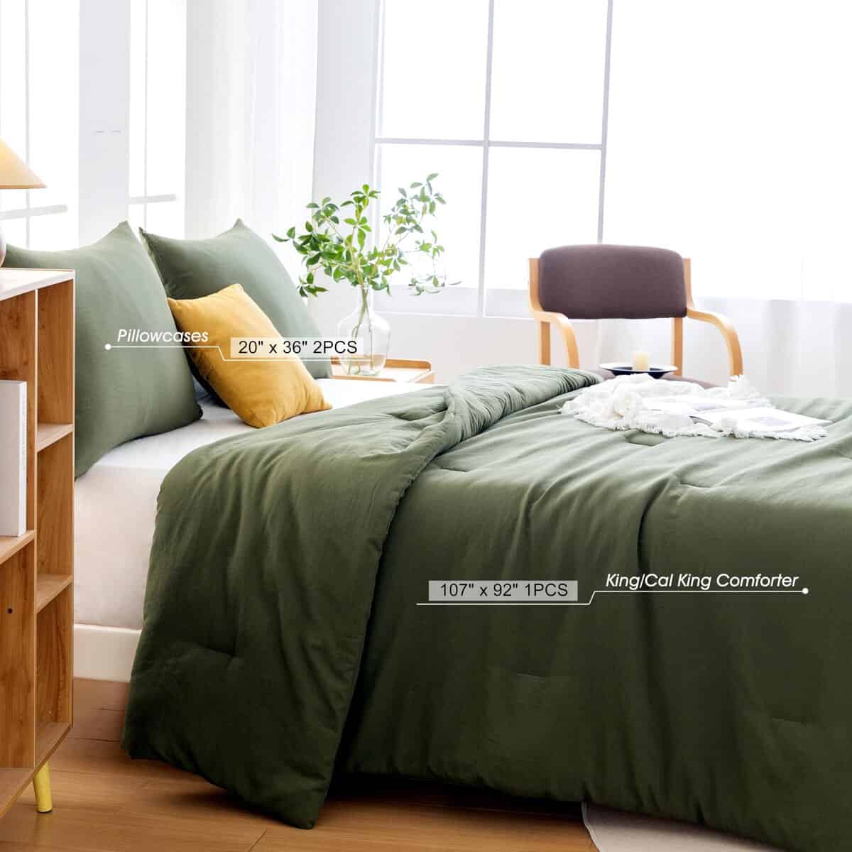 Juego de Edredón King Size Ultra Suave en Color Verde Oliva