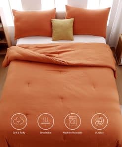 1. ALTA CALIDAD Y MEJOR DESCANSO – Nuestro Juego de Edredón para Todas las Estaciones con Fundas de Almohada está hecho de tela de microfibra de algodón lavable amigable con la piel, garantizando una experiencia suave, cómoda y transpirable. Su material de poliéster mantiene la vivacidad del color y la durabilidad, convirtiéndolo en la elección perfecta para una noche de sueño reparador. 2. LIGERO Y VERSÁTIL – Diseñado para todas las estaciones, este edredón ligero en azul marino cuenta con una tela PP de 250 GSM que proporciona el calor justo. Es lo suficientemente grueso como para mantenerte acogedor en invierno y lo suficientemente delgado como para mantenerte fresco en verano, convirtiéndolo en una adición versátil a cualquier habitación. 3. TÉCNICA MICROESCUPLIDA AVANZADA – Empleando una técnica Microesculpida premium, este edredón elimina las costuras visibles y los hilos de costura, evitando que el relleno se apelmace o se desplace. Este diseño innovador garantiza que el edredón se mantenga esponjoso, suave y visualmente atractivo sin necesidad de cubiertas adicionales. 4. ¿QUÉ RECIBIRÉ? – Los Conjuntos de Edredón se adaptan a tu Cama Doble Tamaño King. Incluye: 2PCS 20″x36″ /50CMx91CM Fundas de Almohada y 1PCS 107″x92″ /264CMX228CM Edredón. 5. ELECCIÓN IDEAL – Los juegos de ropa de cama con edredón vienen en un bonito paquete, siendo una elección ideal de regalo para tu Familia Esposo Esposa Niños y Amigos en el Día del Padre, Día de la Madre, Cumpleaños, Navidad, Año Nuevo, Fiesta de Bienvenida al Hogar, Día de Acción de Gracias o Regreso a Clases.