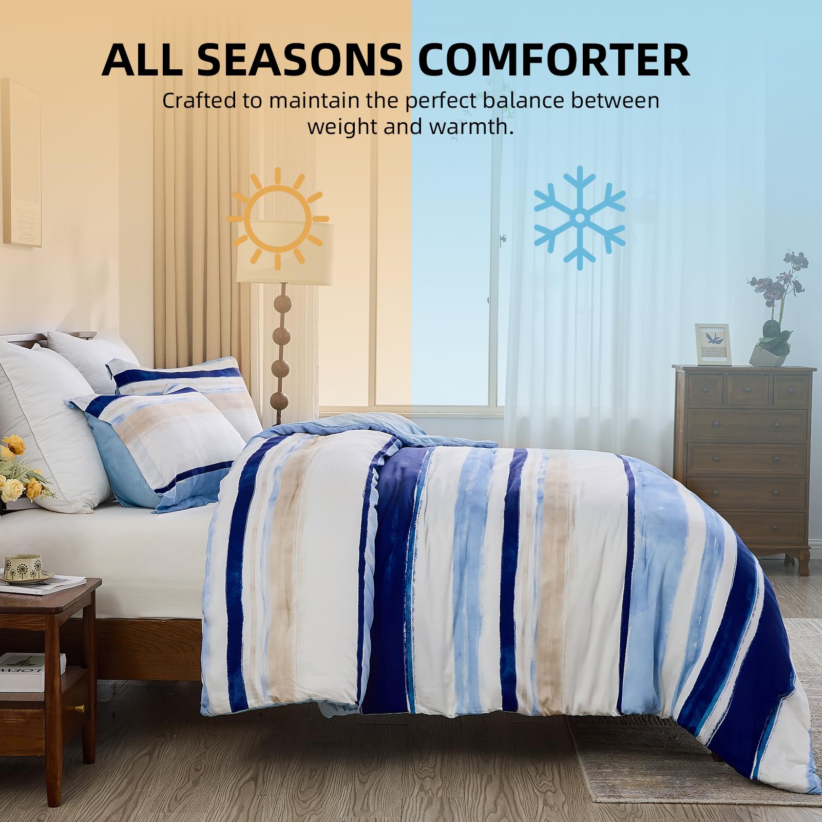 2. Material Suave y Acogedor – El edredón azul marino presenta una carcasa de algodón de alta cantidad de hilos delgados y relleno de microfibra premium al 100%. Suave, amigable con la piel y transpirable, es ligero pero cálido como dormir en una nube. Diseñado para la comodidad durante todas las estaciones, brinda tranquilidad a tu noche de sueño.
