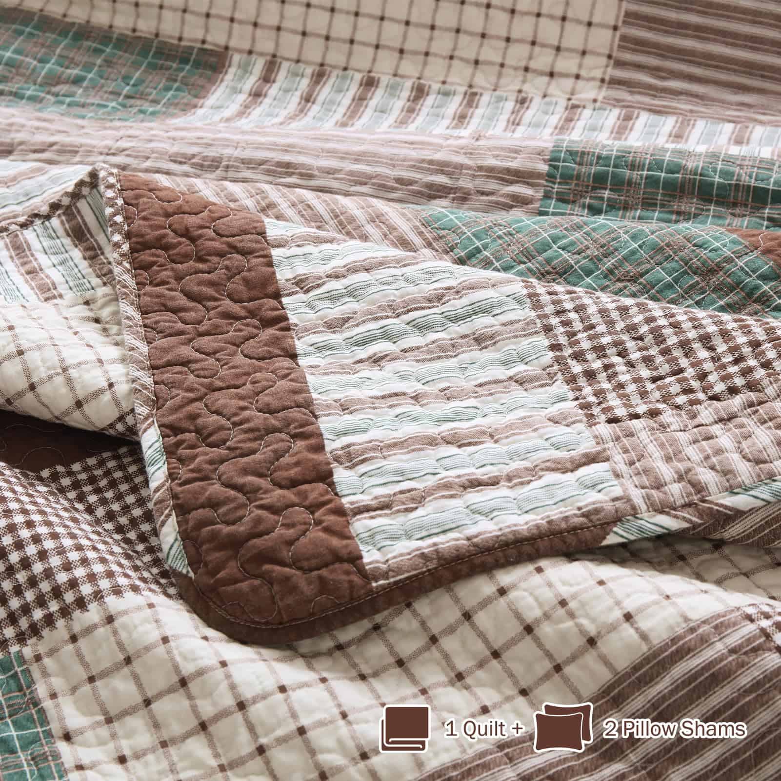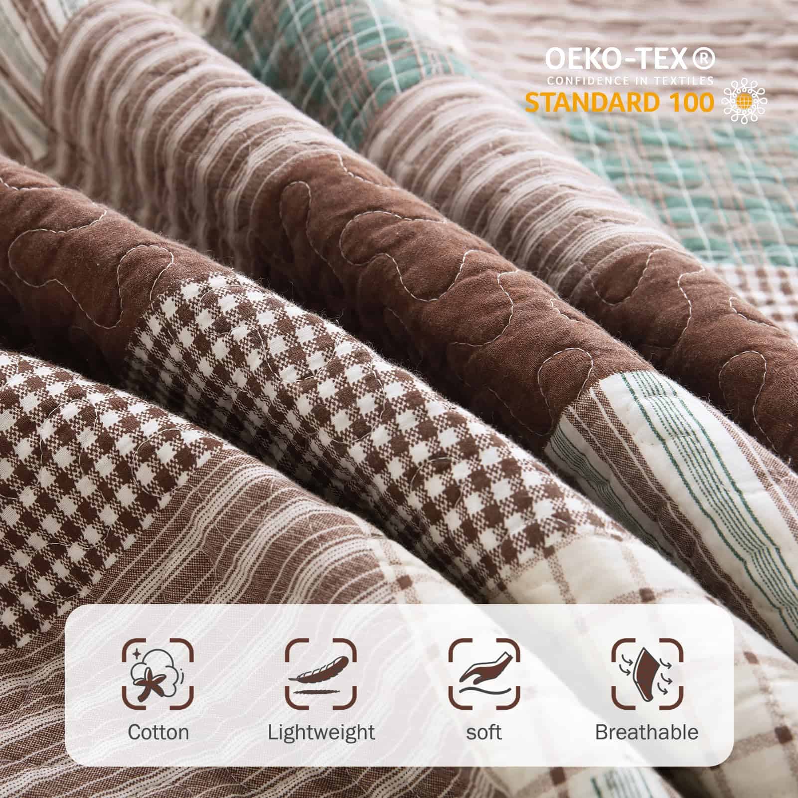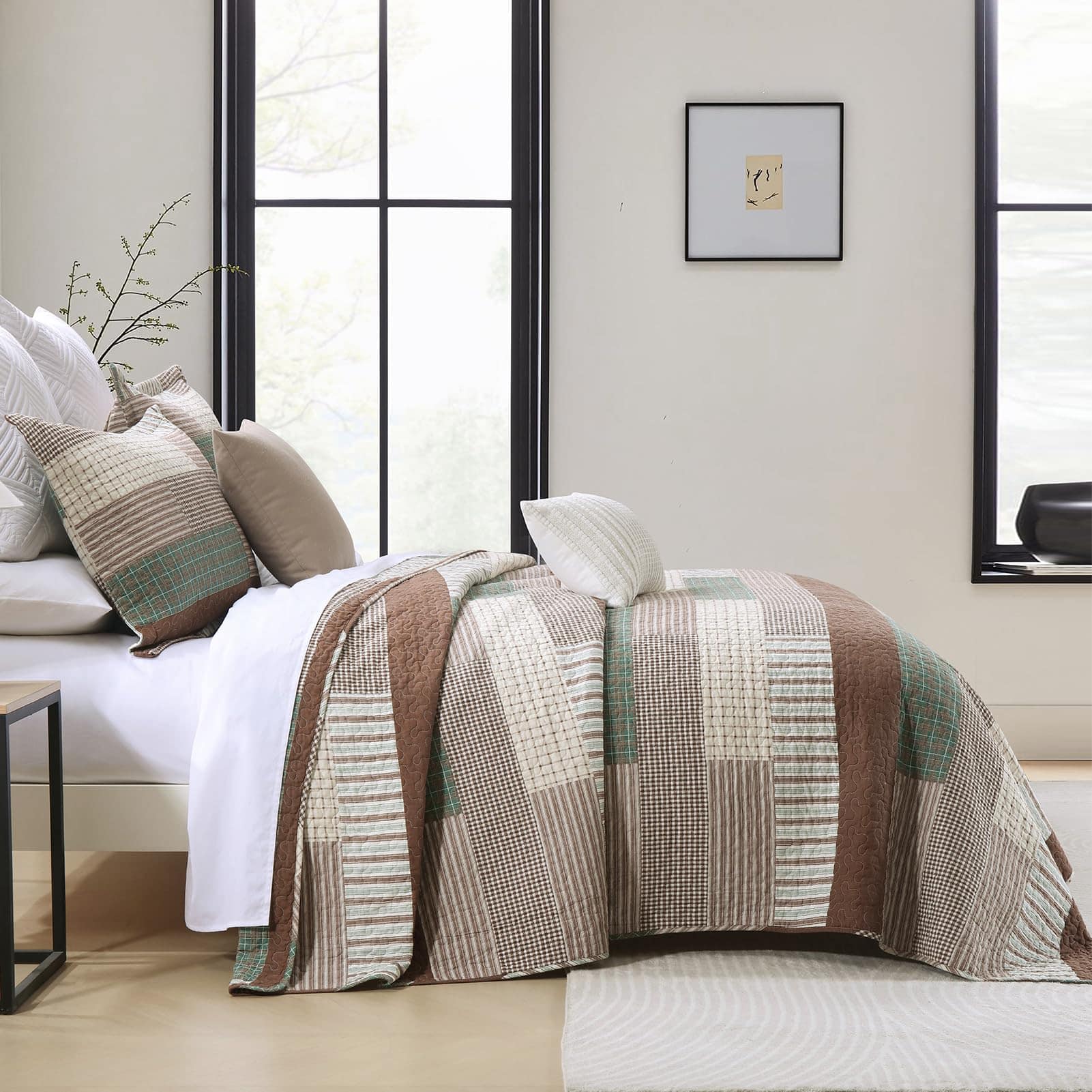 Este juego de edredón king de Y-PLWOMEN está hecho de 100% algodón, lo que lo hace transpirable, suave, cálido y amigable con la piel, brindándote una experiencia de dormir cómoda y acogedora. El set incluye un edredón de tamaño king (98 x 106 pulgadas) y 2 fundas de almohada (20 x 36 pulgadas), permitiéndote combinarlo perfectamente con la decoración de tu dormitorio gracias a su amplia gama de colores y patrones. El edredón está decorado con un elegante patrón de cuadros de cabaña, que se destaca por su diseño minimalista y versátil que puede adaptarse a diversos estilos de muebles de dormitorio. Este edredón de algodón de tres capas garantiza la retención de calor, por lo que es ideal para usar durante todo el año. Además, su diseño reversible y ligero te permite disfrutar de diferentes experiencias de sueño según tus preferencias. Para el cuidado de este edredón king size, es fácil de lavar a máquina por separado en agua fría y secar a baja temperatura. Disfruta de la comodidad y estilo que este juego de edredón 100% algodón te puede ofrecer.