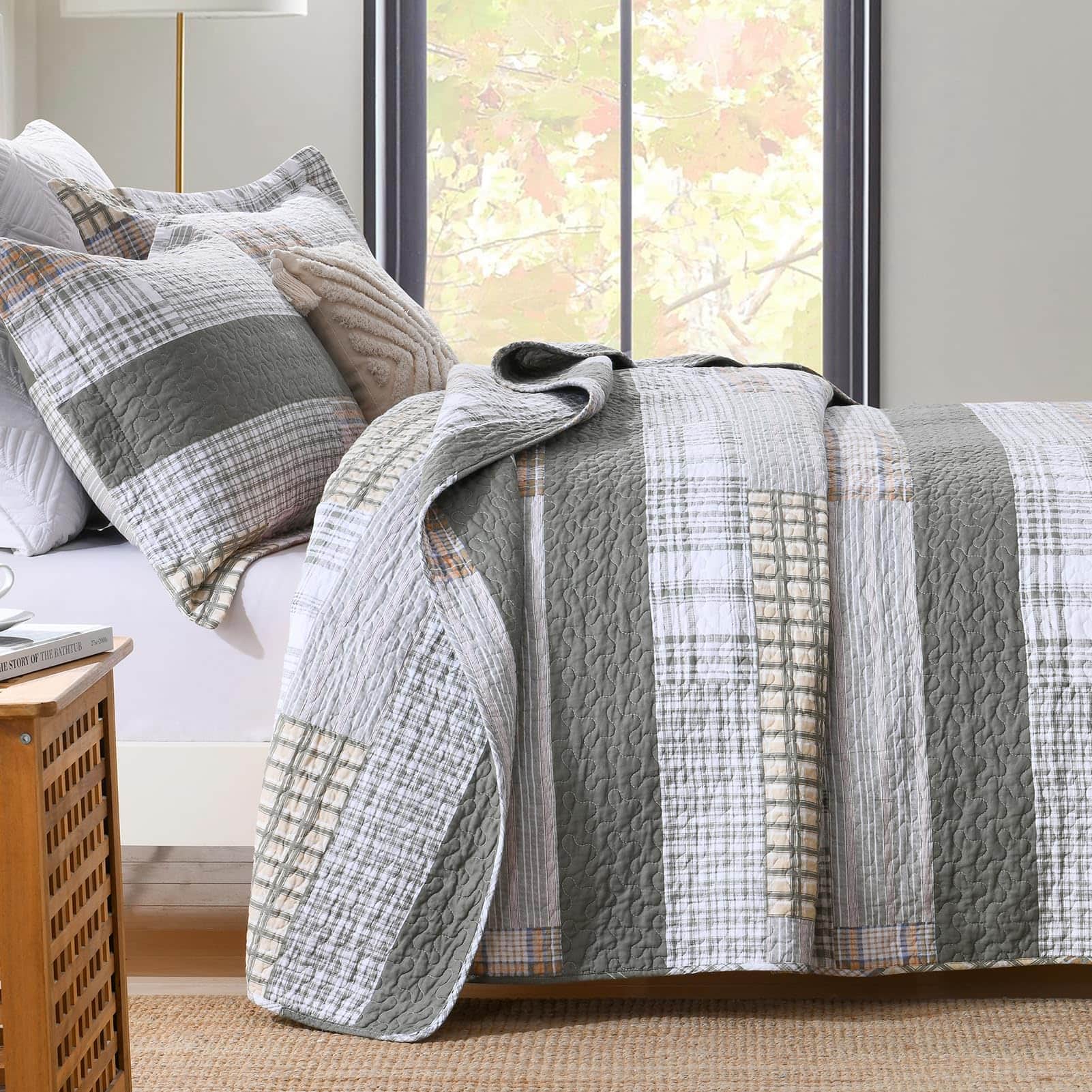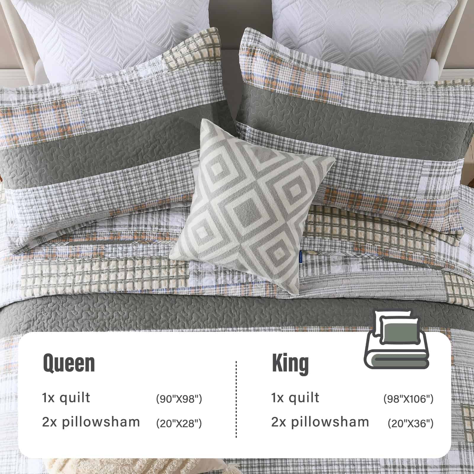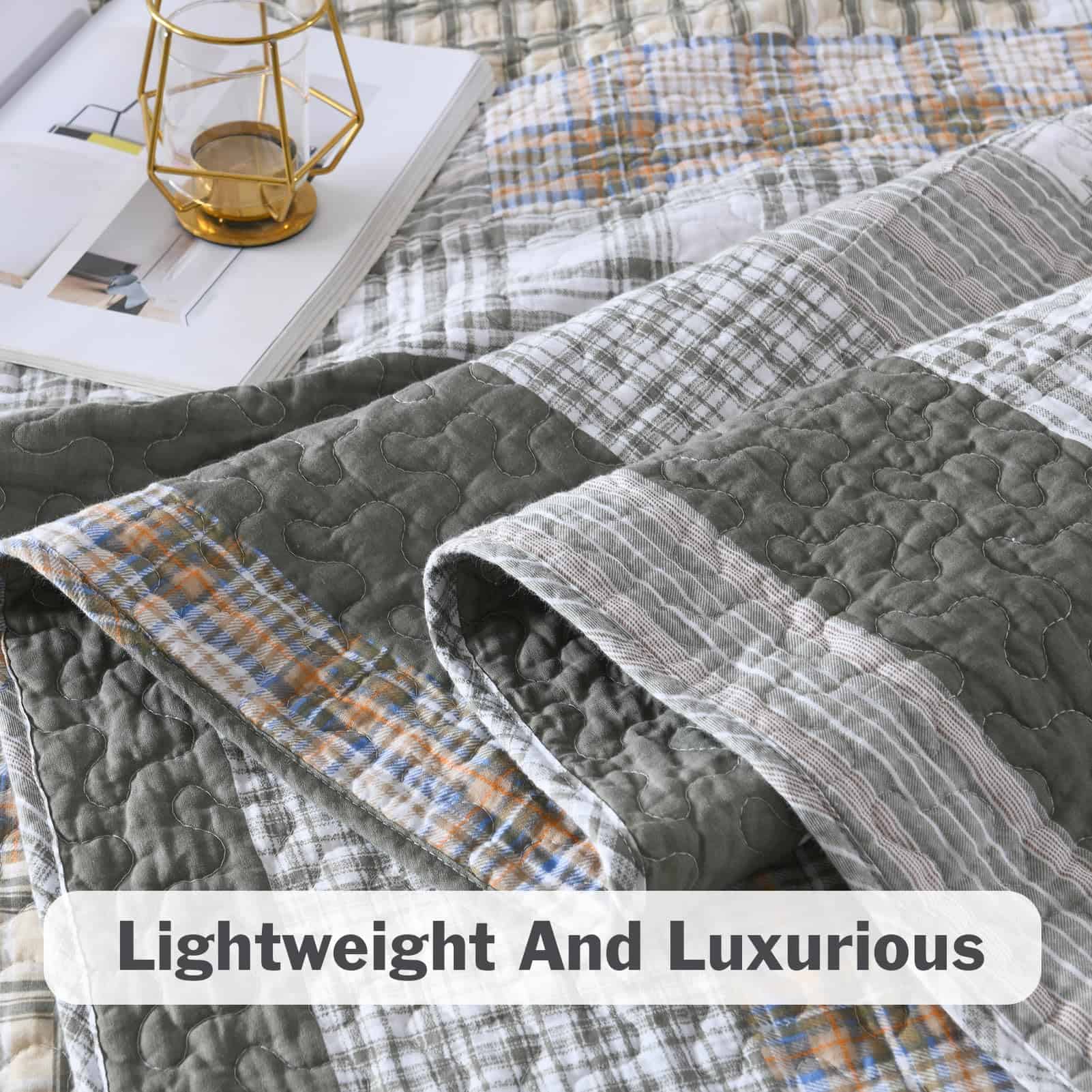 El Juego de Edredón King Y-PLWOMEN está hecho de 100% algodón, lo que garantiza su suavidad y comodidad. Incluye 1 edredón de tamaño King (98 x 106 pulgadas) y 2 fundas de almohada (20 x 36 pulgadas), todo en un elegante color Gris Verdoso. El edredón tiene un hermoso patrón de cuadros de cabaña que le da un toque de estilo a tu dormitorio. Además, su diseño reversible y ligero te permite disfrutar de diferentes experiencias de sueño según tus preferencias. Este juego de edredón es perfecto para todas las estaciones, ya que su diseño de tres capas de tela de algodón asegura una excelente retención de calor. Además, es fácil de cuidar, simplemente sigue las instrucciones de lavado incluidas. Renueva tu dormitorio con este acogedor y elegante juego de edredón.
