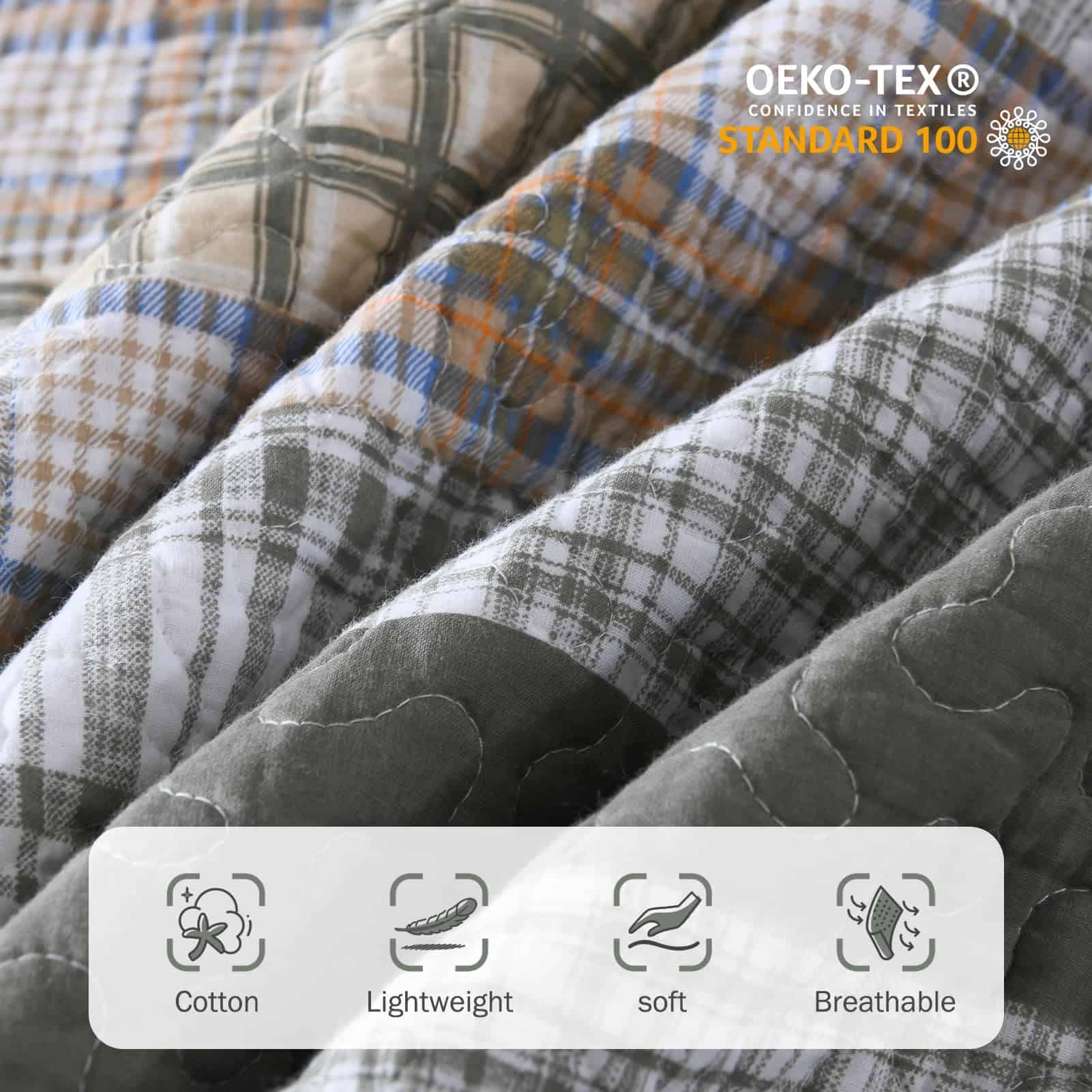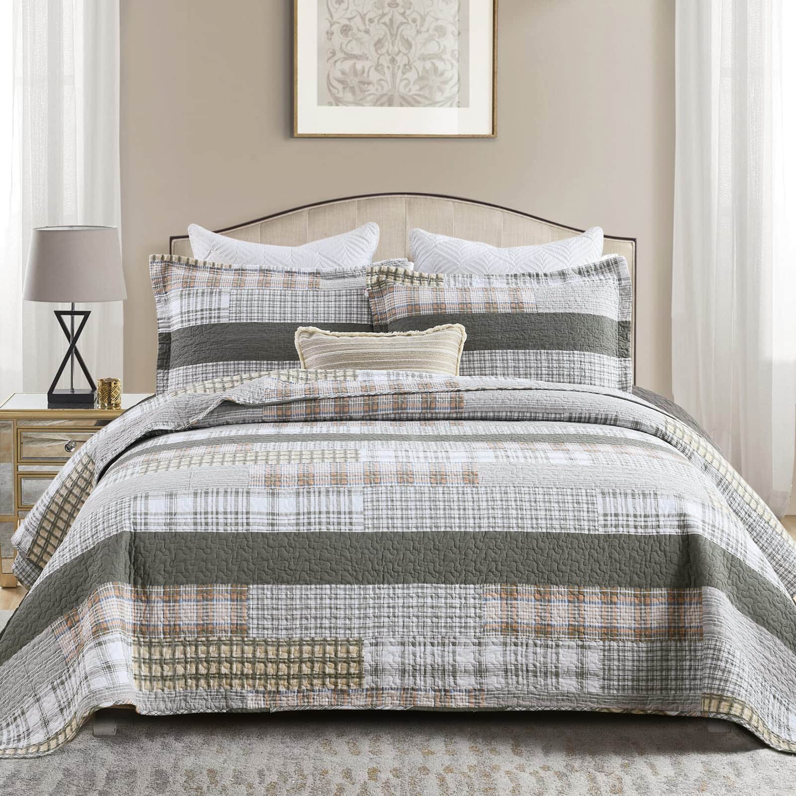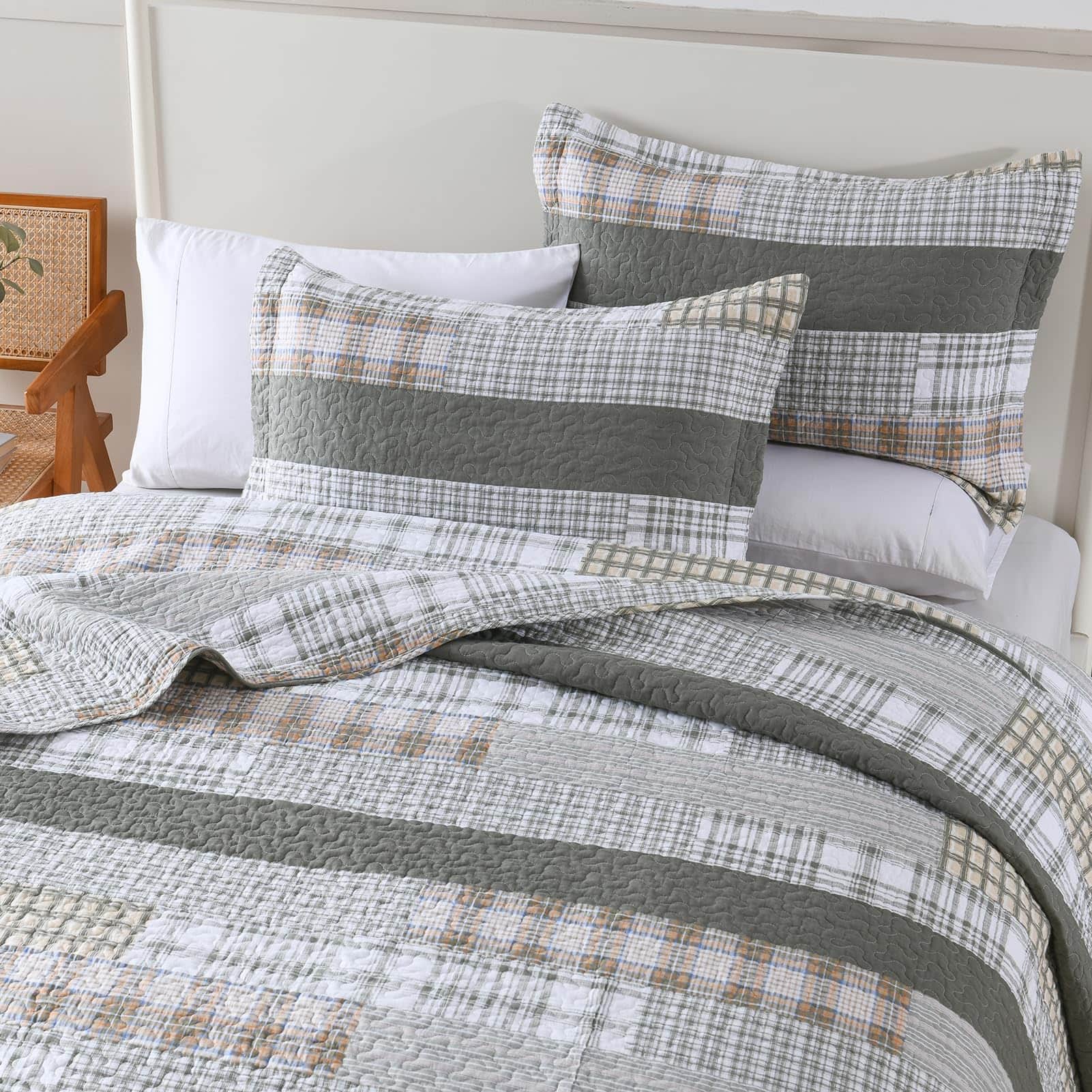El Juego de Edredón King Y-PLWOMEN está hecho de 100% algodón, lo que garantiza su suavidad y comodidad. Incluye 1 edredón de tamaño King (98 x 106 pulgadas) y 2 fundas de almohada (20 x 36 pulgadas), todo en un elegante color Gris Verdoso. El edredón tiene un hermoso patrón de cuadros de cabaña que le da un toque de estilo a tu dormitorio. Además, su diseño reversible y ligero te permite disfrutar de diferentes experiencias de sueño según tus preferencias. Este juego de edredón es perfecto para todas las estaciones, ya que su diseño de tres capas de tela de algodón asegura una excelente retención de calor. Además, es fácil de cuidar, simplemente sigue las instrucciones de lavado incluidas. Renueva tu dormitorio con este acogedor y elegante juego de edredón.