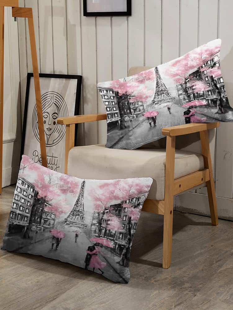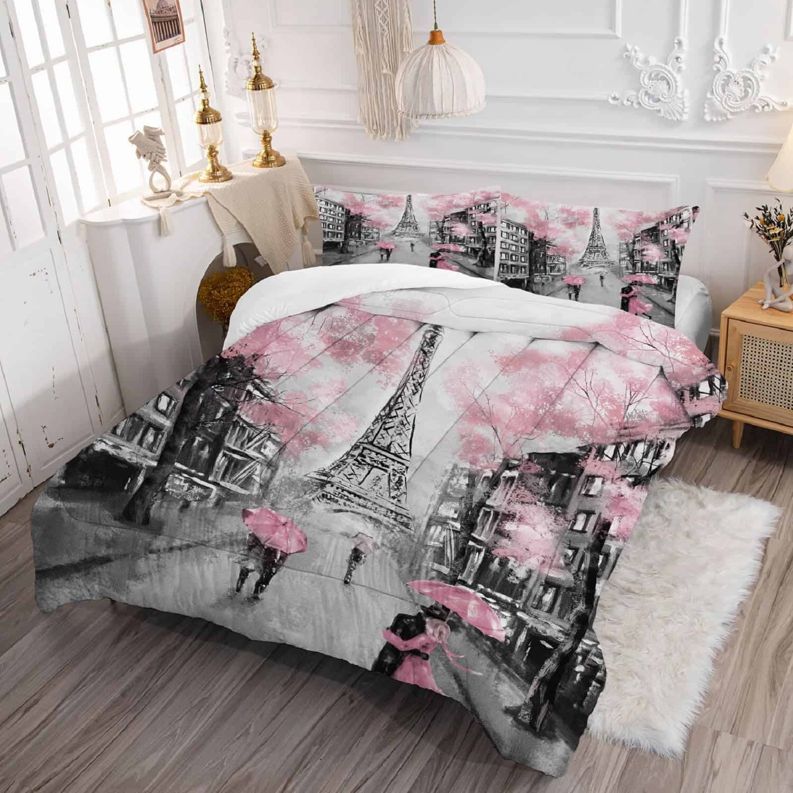 Juego de edredón kxry Pink Paris Eiffel Tower – almohada