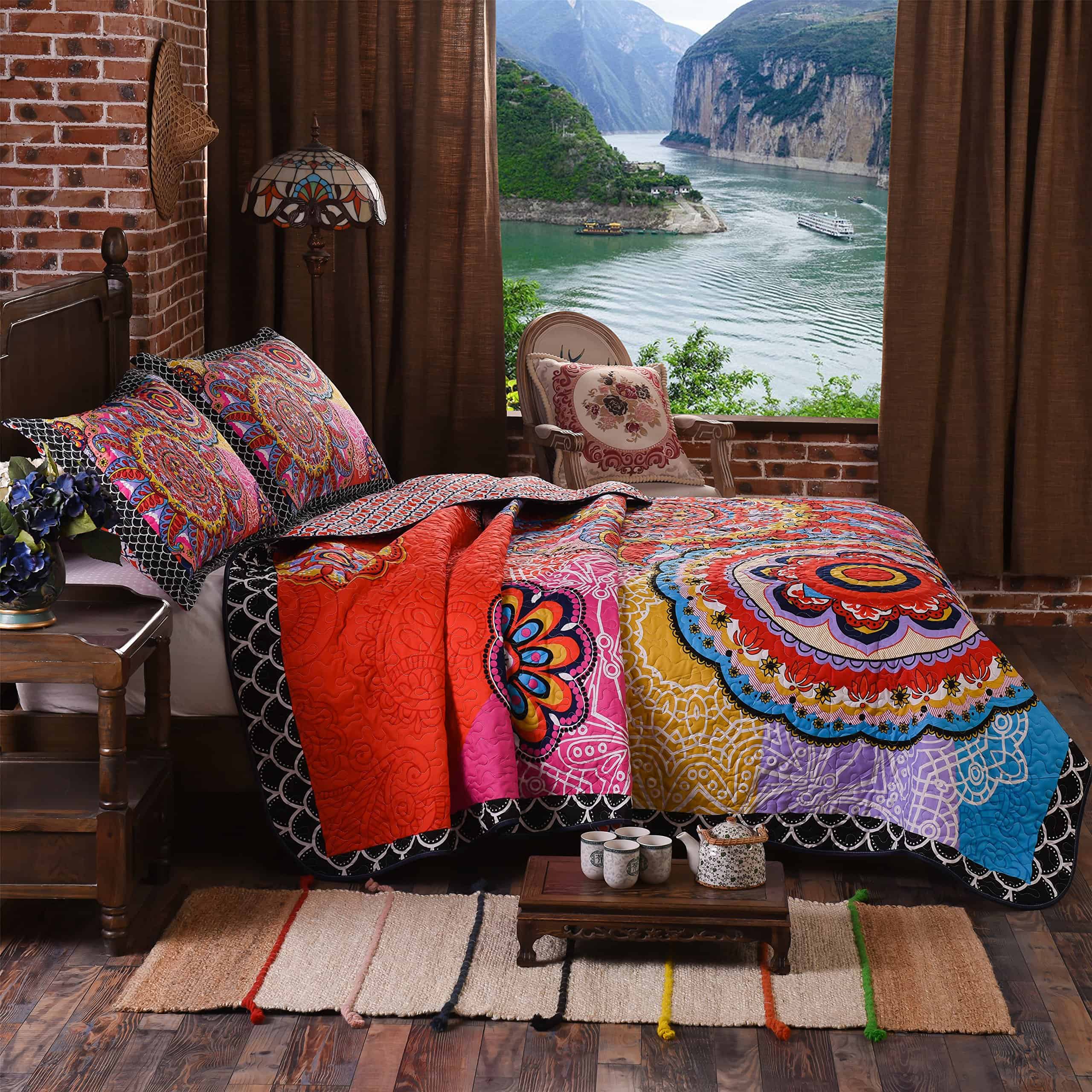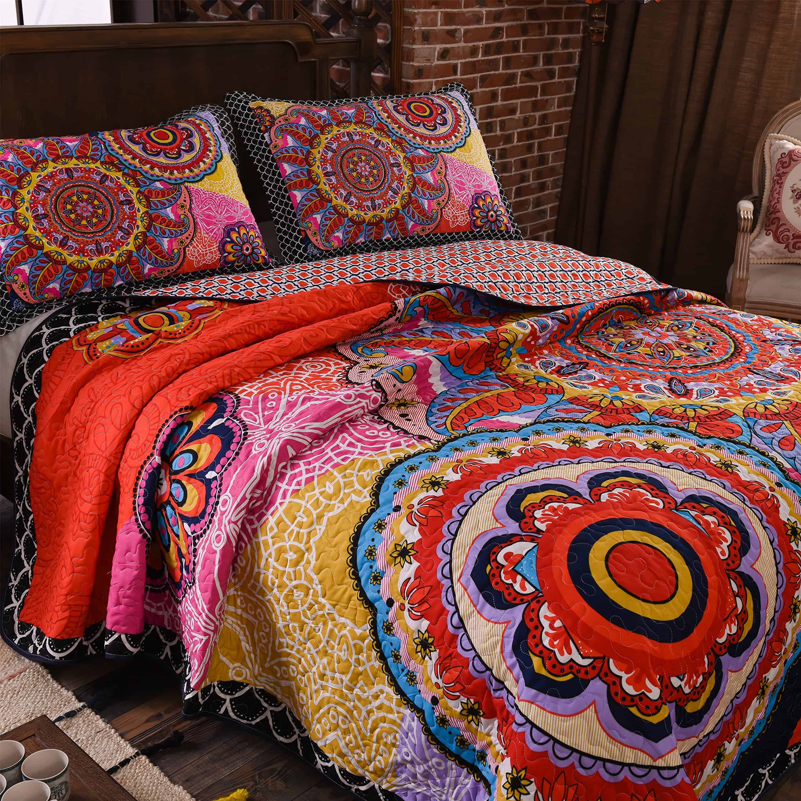 1. Lo que puedes obtener – 1 x juego de edredón (98 x 90 pulgadas), 2 x fundas de almohada (27 x 20 pulgadas). El juego de edredón es reversible, ambos lados se pueden usar individualmente. Este edredón naranja está hecho de material de alta calidad con un diseño vibrante de bohemia, lo que lo hace cómodo y decorativo. Hay muchas formas en las que se pueden utilizar estos edredones. Puedes superponerlo para agregar profundidad, o simplemente puedes usarlo por sí solo, son ligeros y no se sienten pesados. El edredón tiene costuras ajustadas y te durará mucho tiempo. 2. Decoración Mandala Estilo Boho – ¡Queremos que duermas con estilo y comodidad, la decoración nunca ha sido tan simple! Nuestro juego de edredón premium está diseñado para ser bohemio con una impresión exquisita que combina múltiples elementos y colores vibrantes, agregando estilo bohemio a tu espacio, una forma fácil de animar tu espacio, puedes tener un dormitorio colorido y animado. Te encantará meterte en la cama cada noche sabiendo que compraste el juego de cubrecama perfecto. 3. Calidez y Personalidad – Un edredón está compuesto por tres capas: una tela tejida en la parte superior, una capa de relleno y una tela tejida en la parte posterior, combinadas utilizando la técnica de acolchado, el proceso de coser las tres capas juntas. Los edredones solían ser utilizados como cubrecamas, y este uso persiste en la actualidad mientras que la artesanía también está volviéndose cada vez más importante. Actualiza tu espacio con este juego de edredón reversible para un aspecto bohemio. Este patrón único presenta medallones florales en flor acentuados y motivos de cuadros naranjas. 4. Tejido Premium – Nuestro juego de cubrecama está tejido con el material de microfibra de más alta calidad, la sensación de la tela es como el algodón percal (no es algodón) y continuará suavizándose con cada lavado. Crea una experiencia de sueño serena, dejándote una sensación de suavidad y comodidad supremas. Nuestros juegos de edredón son resistentes a la decoloración y a la formación de bolitas. Saldrán de la secadora luciendo frescos cada vez. Y sí, también son resistentes a las arrugas. 5. IDEA DE REGALO ÚNICA – Si estás buscando algo como regalo de Navidad, Año Nuevo, Vacaciones, Cumpleaños para tu mamá, papá, hermana, hermano, abuela, abuelo, esposa, esposo, hijo, hija y todos los demás seres queridos, este juego de edredón es una opción absolutamente magnífica.